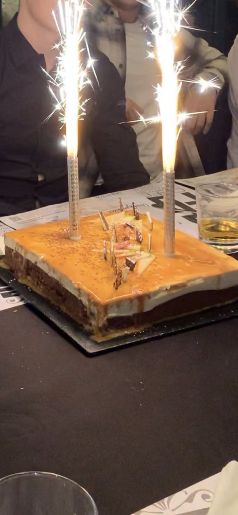 Bonjour, Pour leur anniversaire ce samedi 6, les jumeaux avaient convié et organisé une table de 20 personnes en salon privé. Pas de souci pour le saumon aux betteraves jaunes (choisi majoritairement) mais des parts inégales selon les personnes. Pas de problème pour le lieu noir au boulgour (choisi majoritairement) sans sauce pour certains et servi avec attente. Passons au dessert que les parents ont goûté le lendemain (photo jointe): entremet poire (mousse insipide), choco-caramel (pauvre en chocolat et pâteux), biscuit praliné (où est le praliné ?) à 8 euros la part !!! Imaginez la déception des jumeaux qui ont payé le repas de tous les convives et surtout leur maman le gâteau ! Malgré l'entrée et le plat, la déception du gâteau d'anniversaire (avec l'avis de plusieurs convives) justifie les 2 étoiles. Cordialement