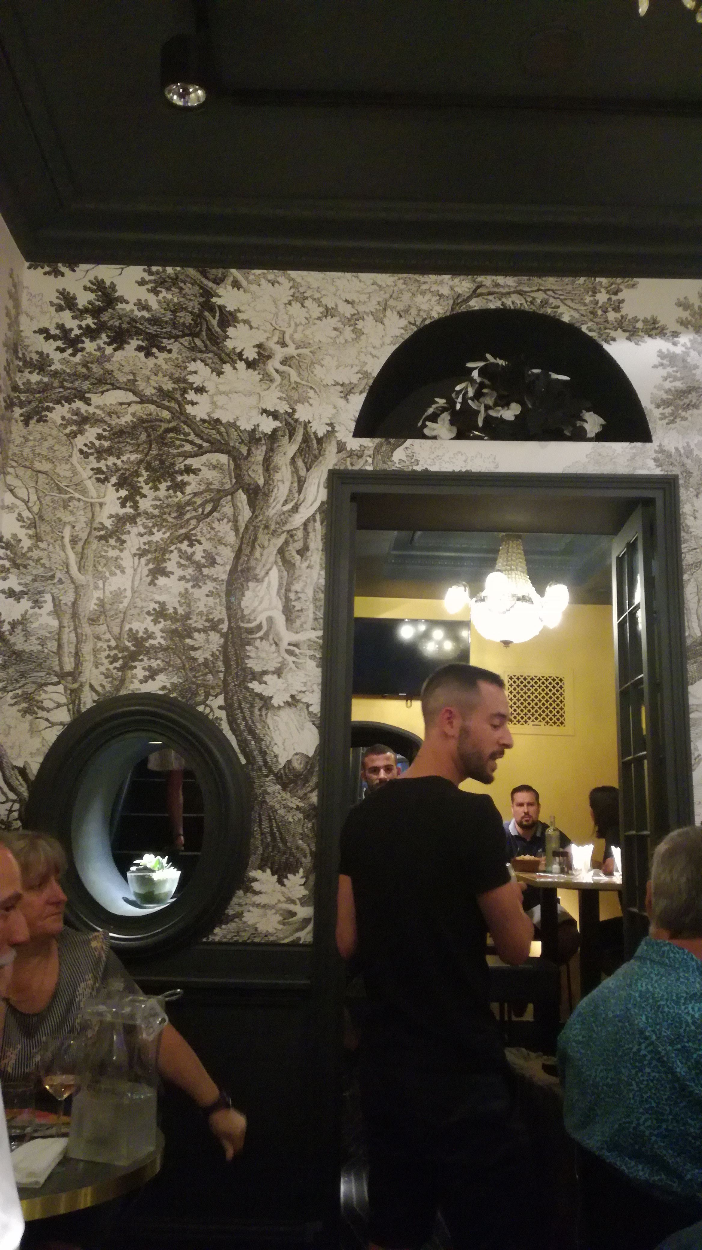 Très bonne cuisine, j'ai adoré leur foie gras et les autres plats. L'ambiance est feutrée, surtout dans le salon aux miroirs. Belle décoration, le personnel est souriant et sympathique et le patron est adorable. J'ai aimé l'écouter nous présenter ce lieu atypique qui autrefois avait des menus bien différents. 😂 Je le mets dans la liste de mes restos préférés. Attention toutefois à la propreté des toilettes, j espére que c'était exceptionnel car il y avait vraiment beaucoup de monde ce jour là.