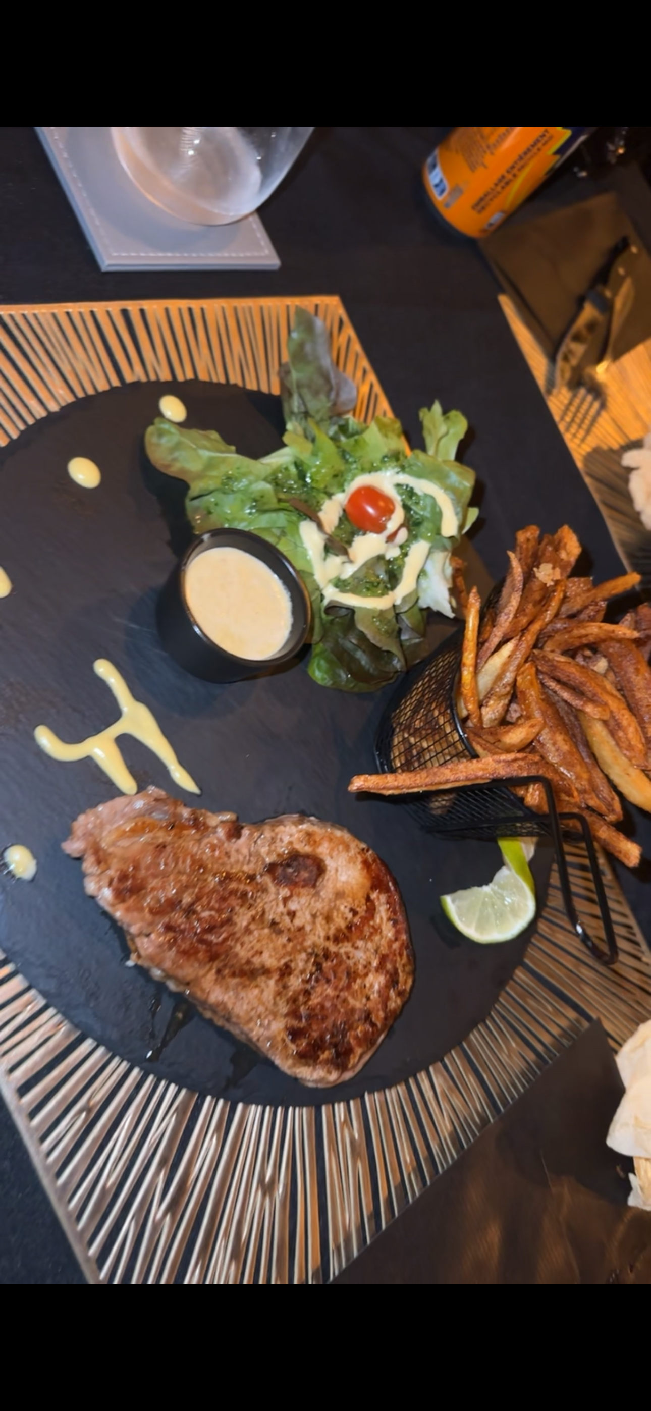 C’ÉTAIT FABULEUX !!!!! De l’entrée au plat c’était vraiment très très bon ! Je suis tellement difficile de manière générale et je mange souvent au restaurant et je suis toujours déçu par quelque chose et là je n’ai rien à dire vraiment ! L’entrée le foie gras était tellement bon le toast est incroyable vraiment ! Le plat pavé de bœuf sauce foie gras mais je n’ai pas les mots pour vous dire à quel point c’était succulent tout est maison et surtout bien fait ✅ ! Vous savez quoi allez y vous verrez par vous même ! Il tienne vraiment bien leur noms c’était fabuleux de l’accueil au plat , serveuse cuisinier merci à vous !