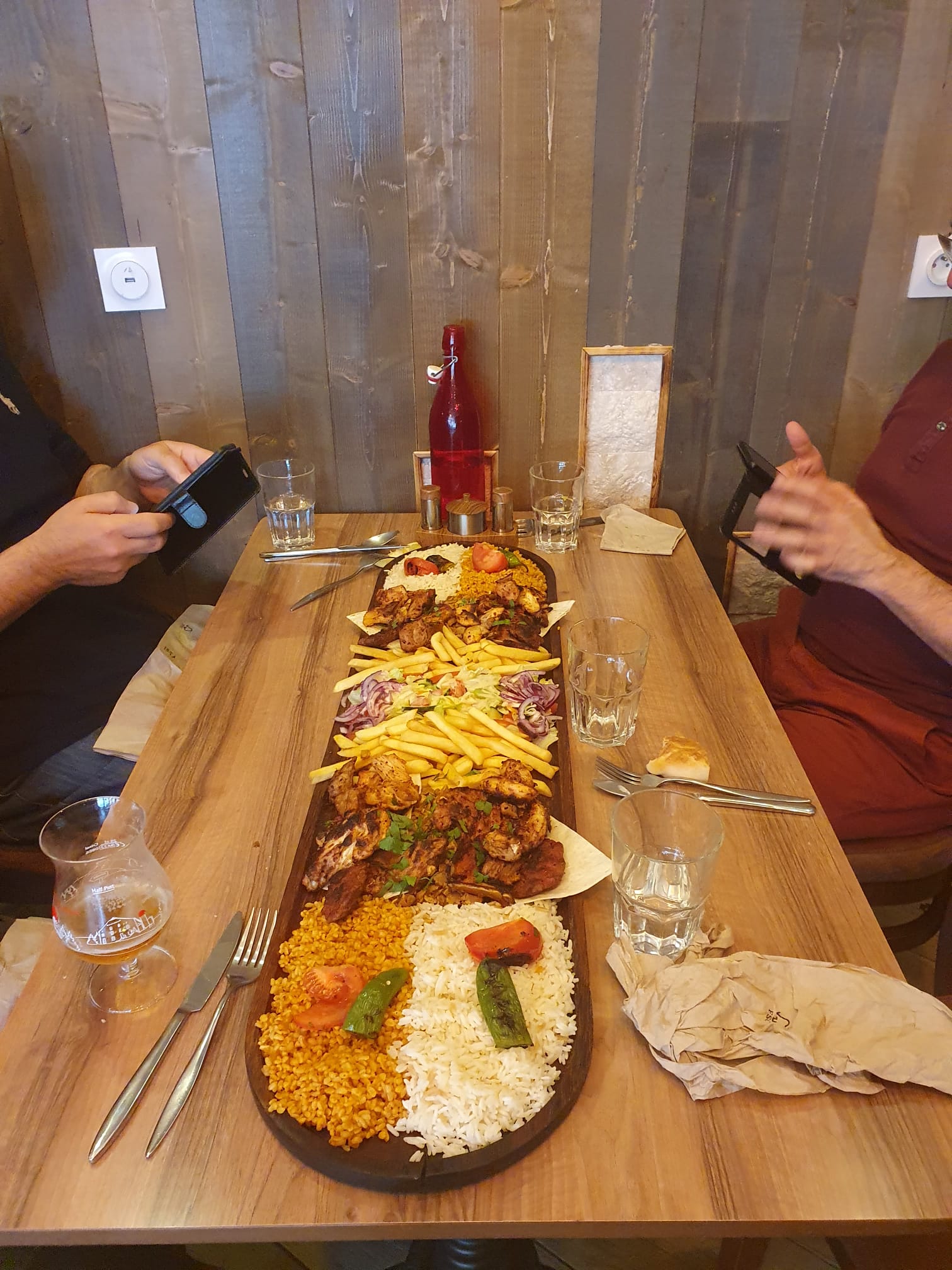 Endroit très confortable et service amical. Nous avons eu un grill mixte (2pers.). Les différentes sortes de viandes délicieuses étaient bien cuites et tendres et nous en avions largement assez pour deux.