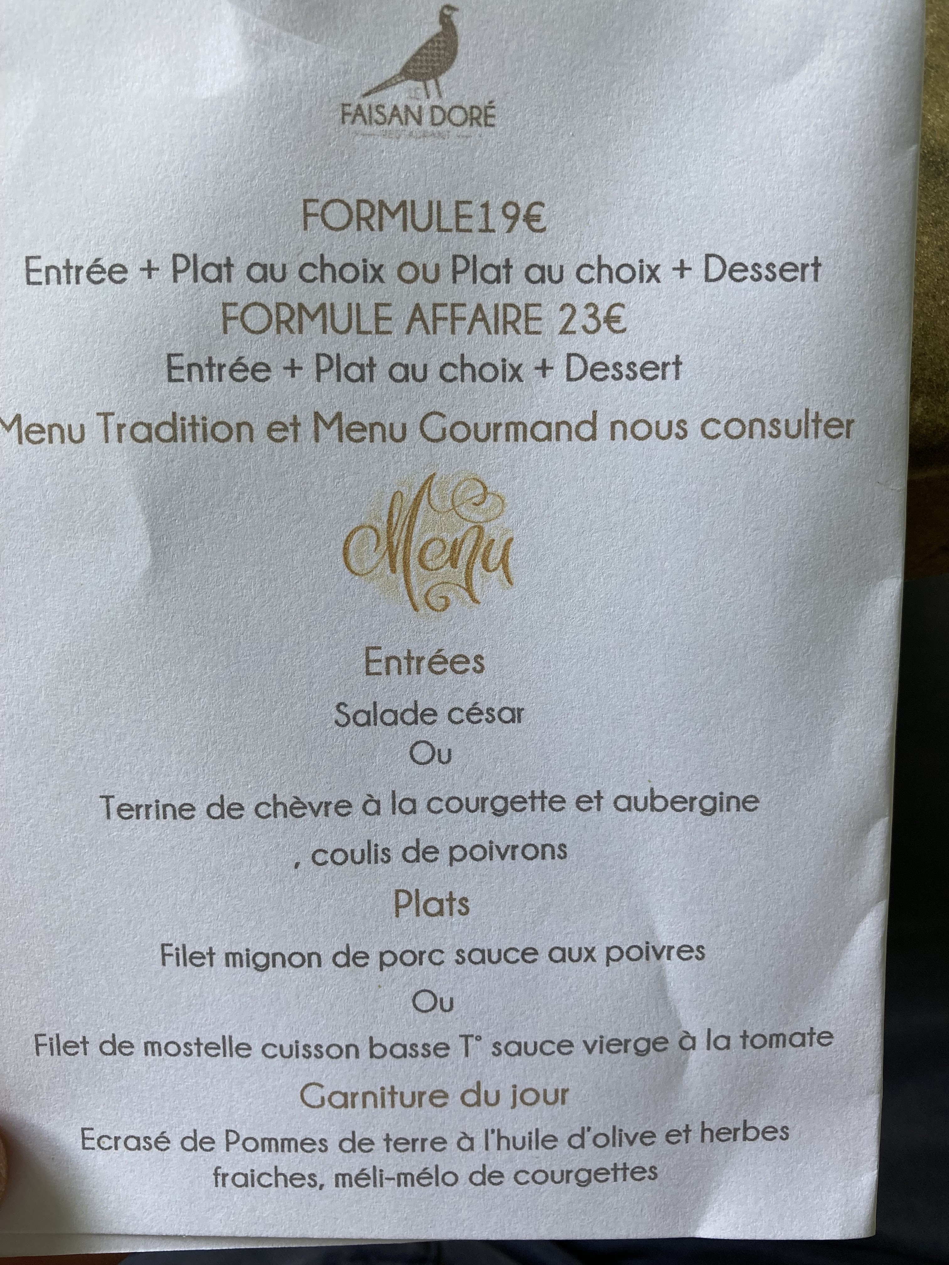 Bof... Service minimum...! On sent une très mauvaise ambiance entre les serveurs. Le patron et son épouse qui se chamaillent devant toute la salle ... Une attitude bizarre. Une réservation de 6 personnes oubliée...Ça fait beaucoup, Le Faisan Doré a vraiment les ailes brûlées !