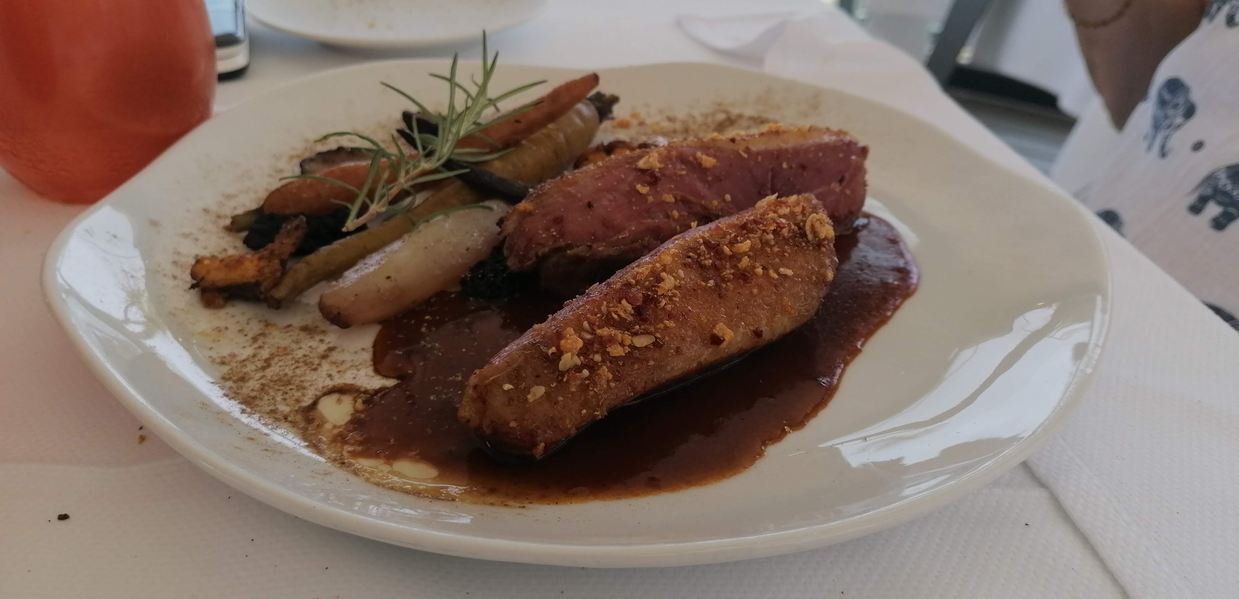 Les plats sont toujours réussis. On peut facilement comparer avec certains pseudo restaurants, pizzerias, restauration rapide, bars... très présents sur la côte. On apprécie le service impeccable, discret. Mais on a beaucoup de mal avec la lenteur d'arrivée des plats. 3 heures pour entrée-plat-dessert. C'est bien trop long, on se rabat sur le pain, délicieux, le vin. Le restaurant n'était pourtant pas trop plein et nous avions pris des plats au menu dit du marché. Donc en principe non exceptionnels.