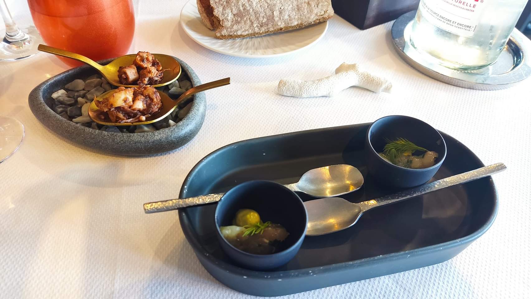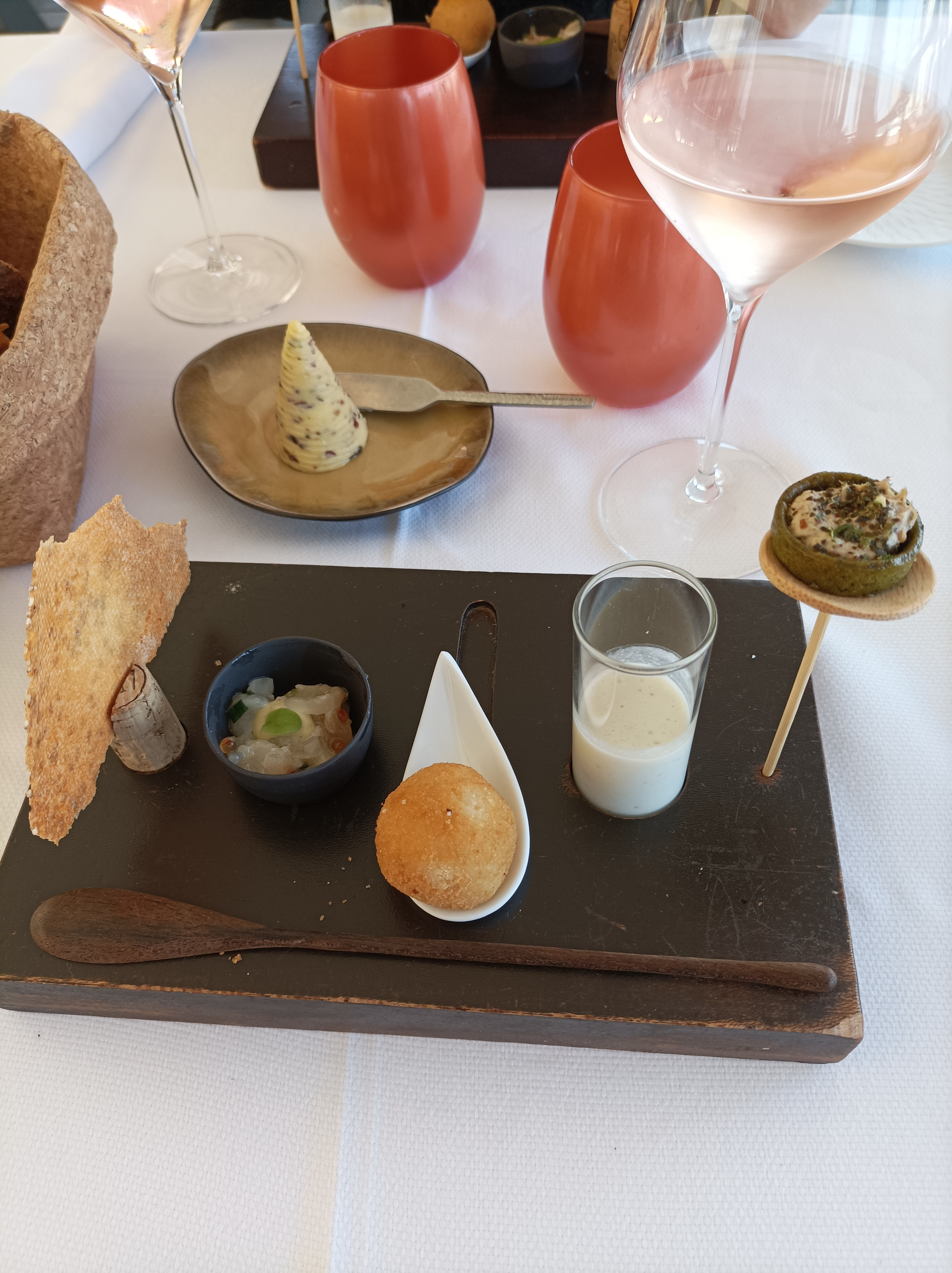 Un démarrage pas au top … Apéritif longuet avec des services décalés aux convives , les mises en bouches au demeurant assez moyennes servies après 45 mn …. Ensuite , un vrai régal :saveurs et compositions au RDV Peut-être que la forte tramontane n’a pas aidé avec les courants d’air et l’humidité ambiante à optimiser ce repas . L’assiette de langoustines était merveilleuse . Le service bienveillant bien qu’un brin débordé . Une table à faire .