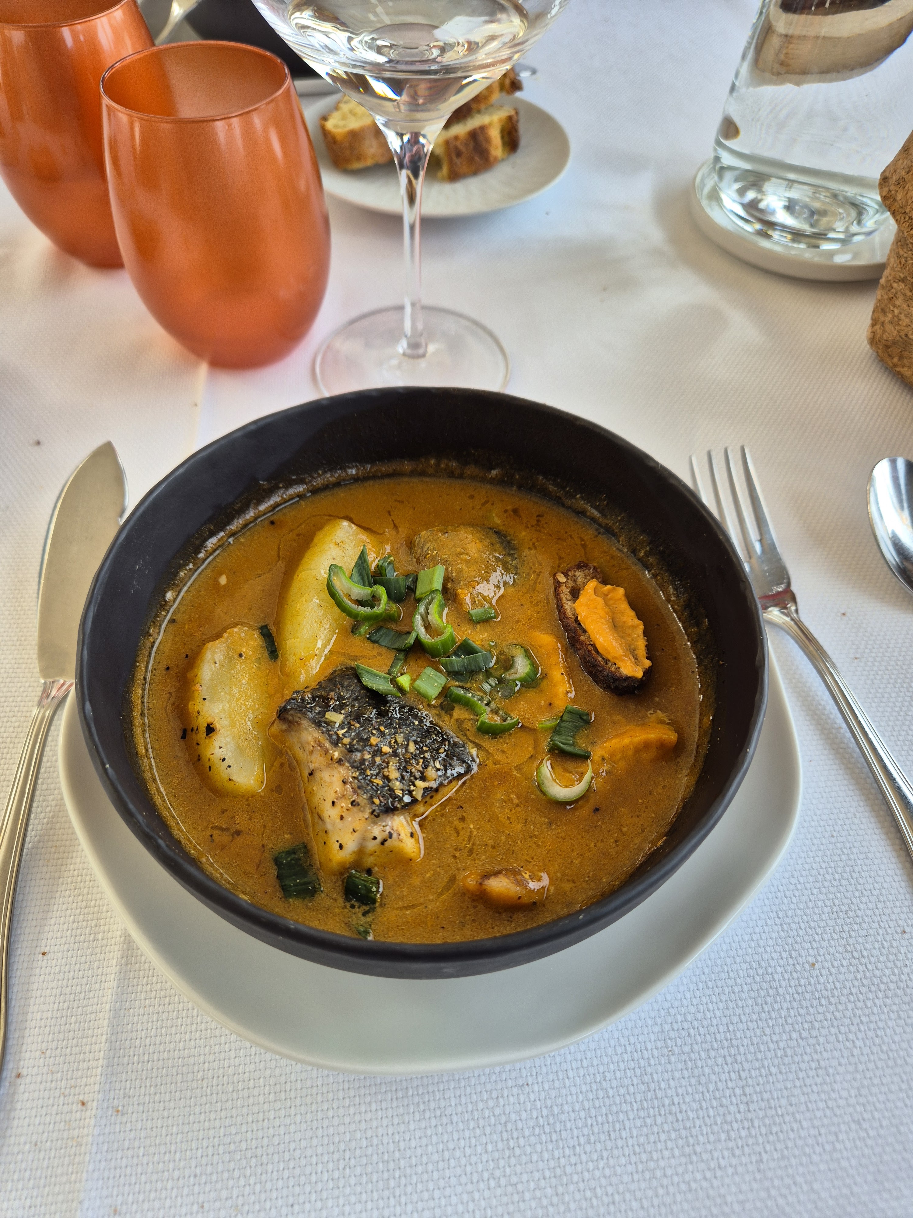 Tout simplement exceptionnel. Le cadre magnifique avec cette terrasse vitrée face au port. Le personnel extrêmement accueillant. Des plats à la fois délicieux et beau visuellement ou chaque éléments apportent sa contribution à l assiette pour donner un ensemble tout bonnement succulent, de la mise en bouche au dessert. L'accord mets et vin est parfait, les vins locaux venant sublimer l expérience culinaire. Aucune fausse note, je recommande très fortement.