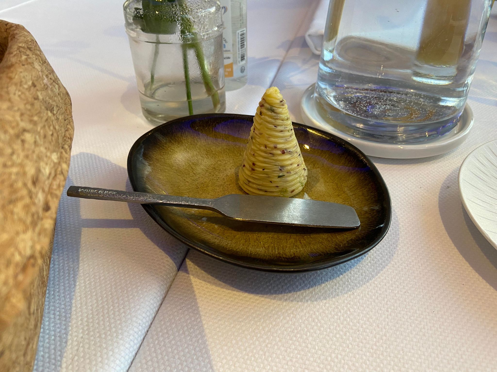 Menu à 38€ : mise en bouche, entrée et plat très bon, dessert pas à la hauteur d'un chef étoilé, pas de choix au menu uniquement une tartelette aux fruits sans saveur et très simple... Salle non climatisée, serveuse en sueur qui perlait sur notre table... En résumé, déçus... Surtout par les désagréments et le peu d'excuses de la patronne au moment du paiement de l'addition.. nous n'étions que des touristes...