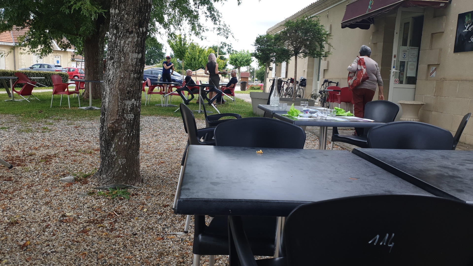Déjeuner en famille lors du vide grenier de juin 2023. Découverte. Cadre agréable en extérieur, bonne cuisine (faux filet frites salade, foie veau écrasé pomme de terre carotte courgettes, burger, tranche foie gras en entrée). Un point pour le pain du burger original, vert. Un régal les plats.