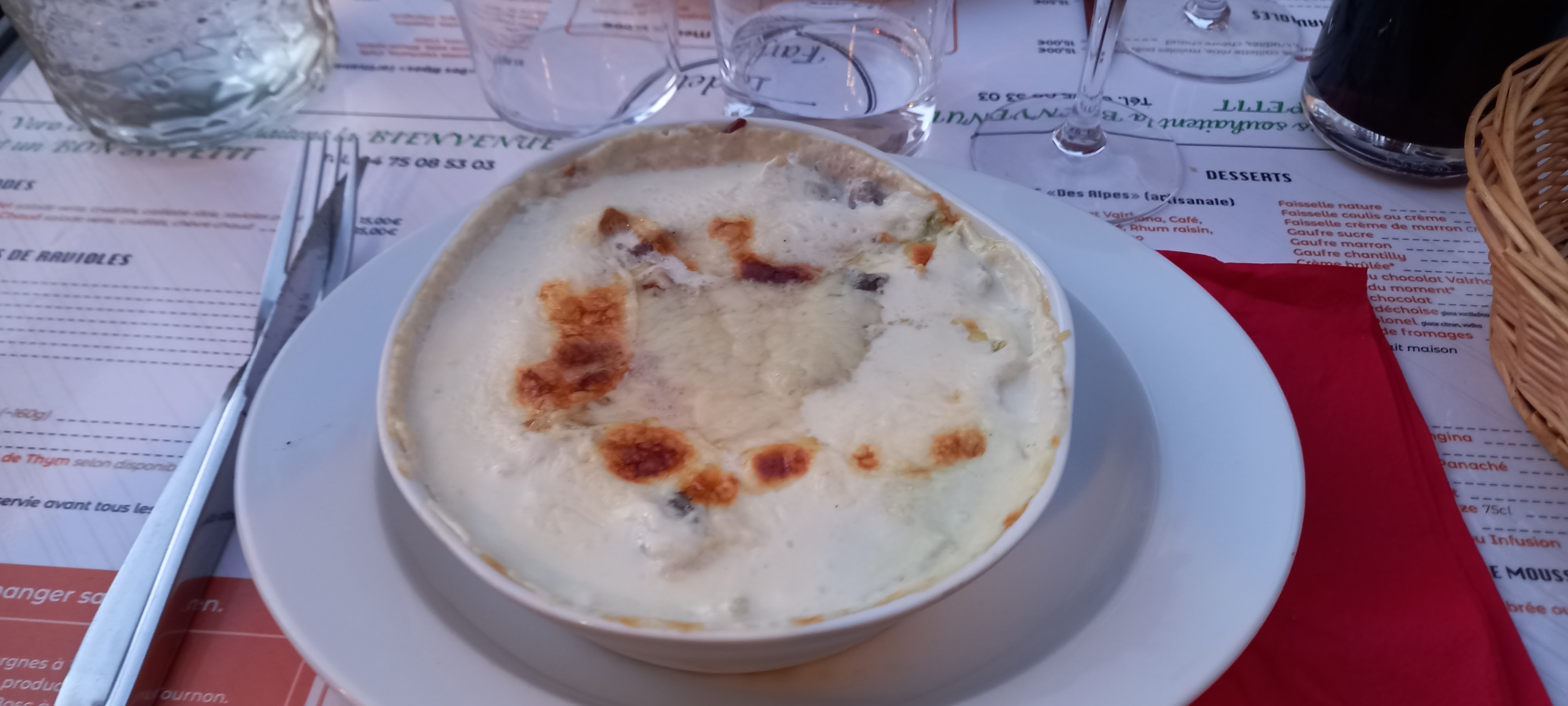 Je recommande vivement ! Tout était bien préparé du début à la fin. Ravioles gratinées excellentes, petite salade fraîche avec une vinaigrette dont on se souvient et un tiramisu à la crème de marrons auquel je n’ai laissé aucune chance. Tout ça avec un accueil très chaleureux. Merci ! :)