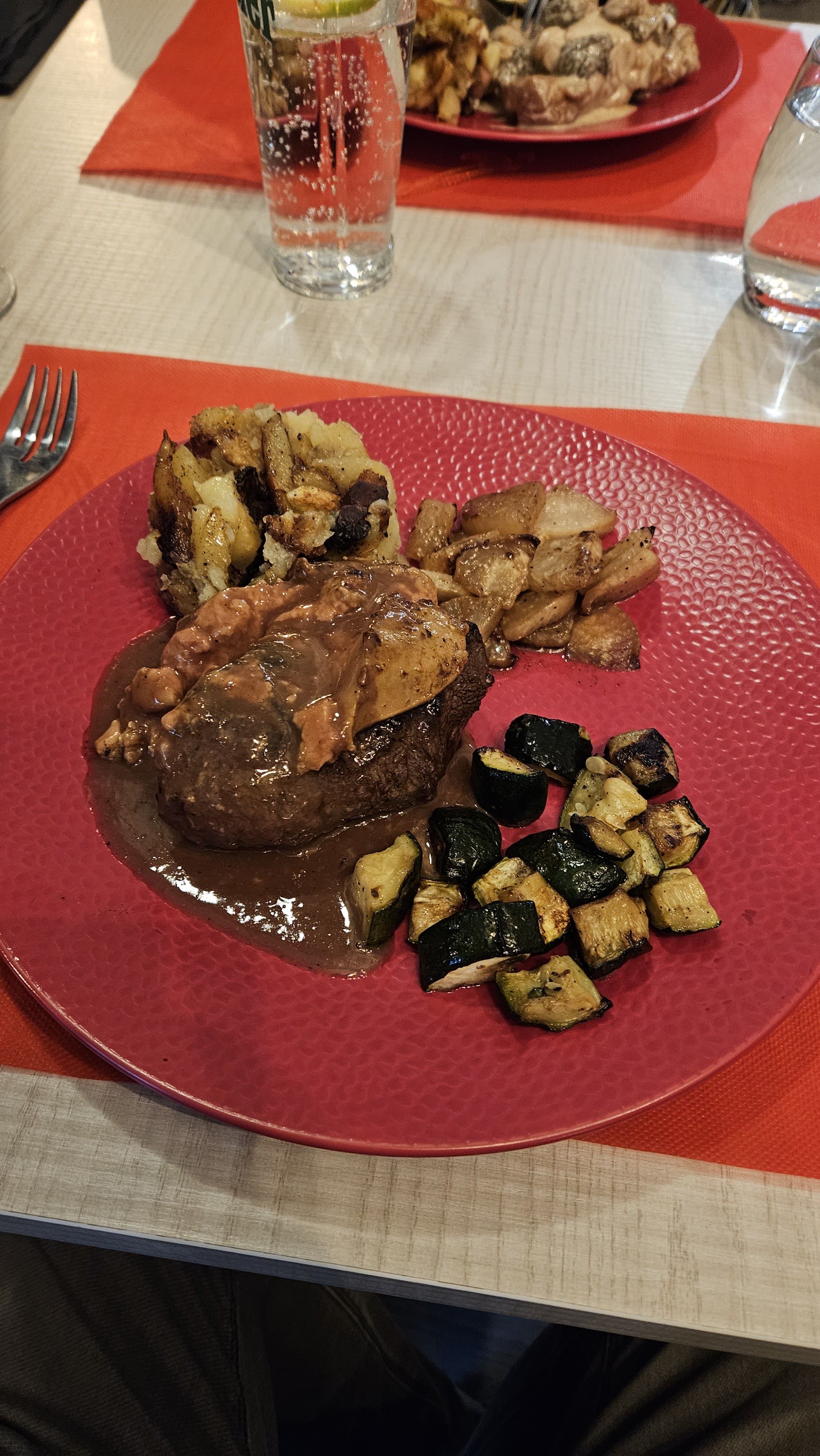 Trés bon, je conseille pour ceux qui aime la viande et les pommes de terre roti