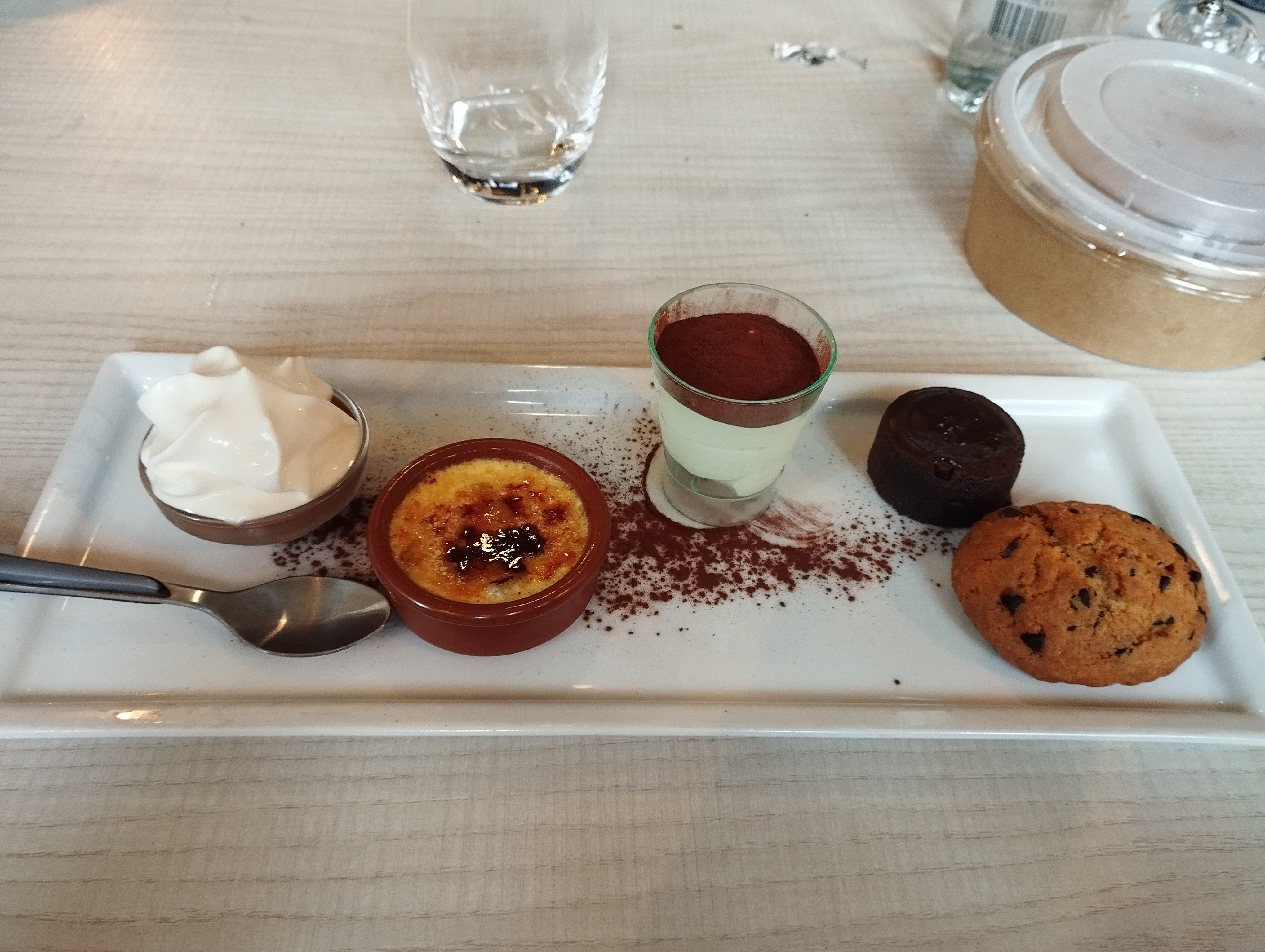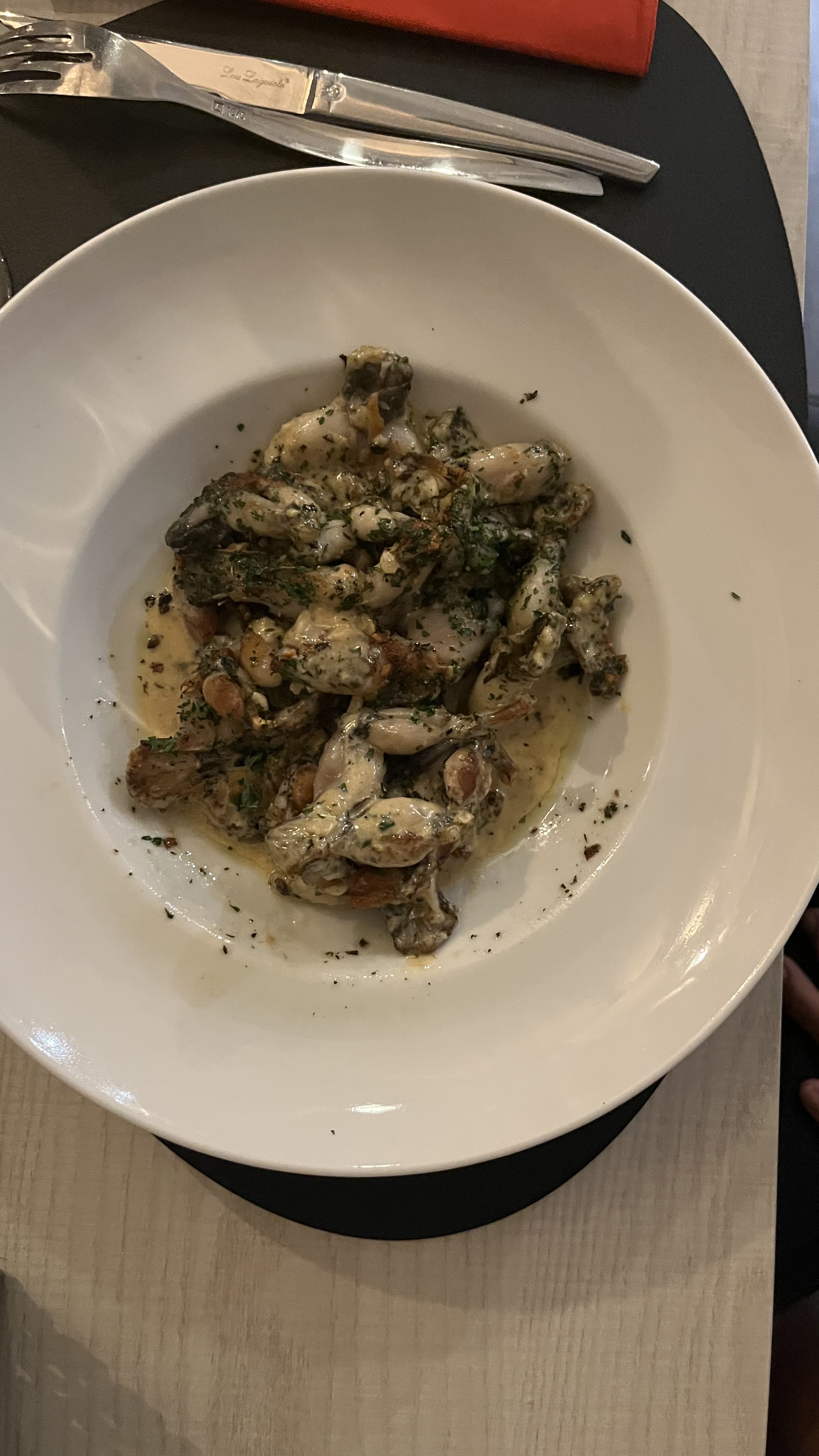 Nous avons pris à emporter, tout était parfait et très copieux, dommage qu'il n'y avait pas de pain avec la commande pour saucer la crème des cuisses de grenouille et pour manger avec le fromage ,mais sinon un régal