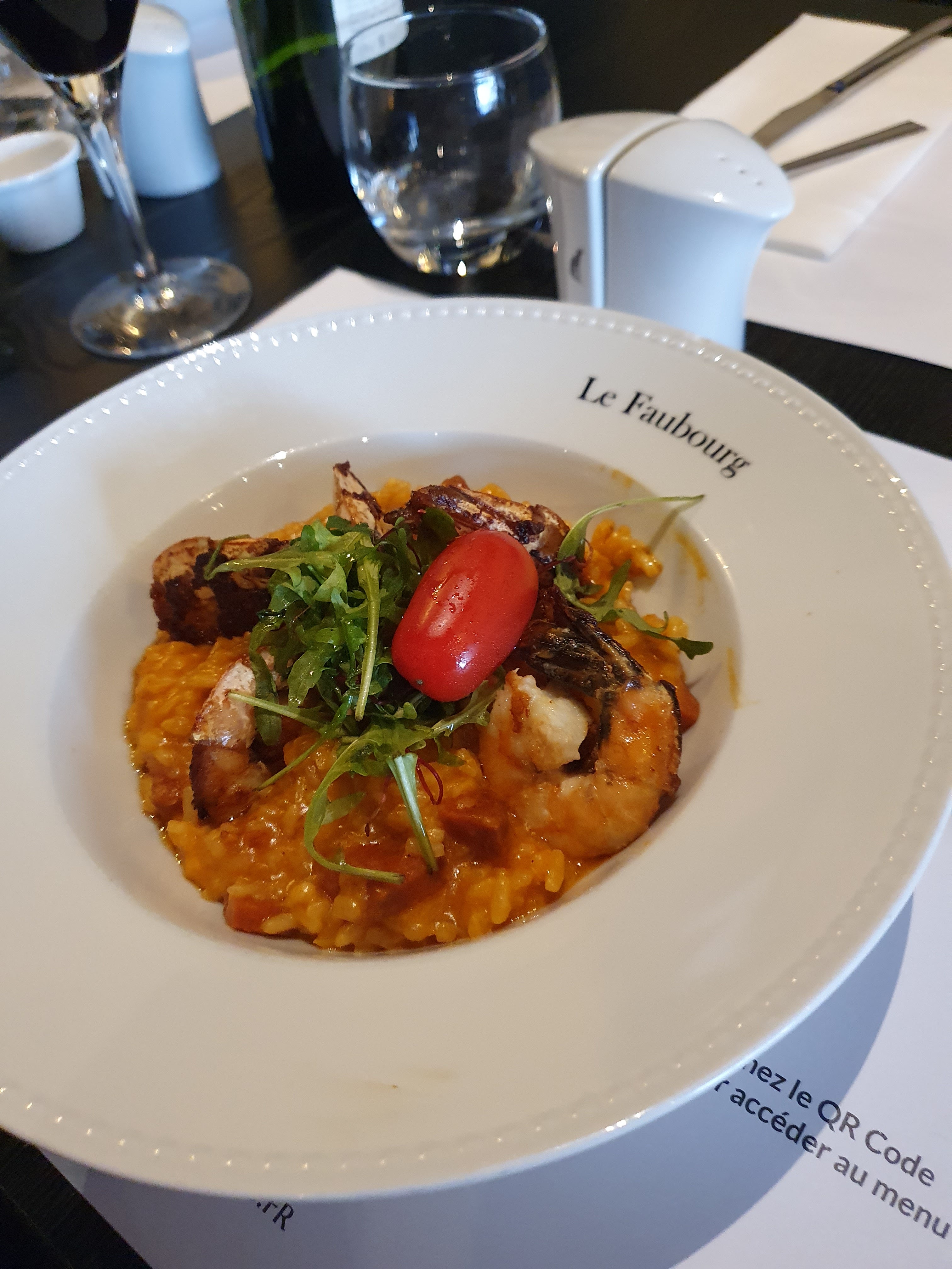 Superbe soirée au Faubourg ! Cuisine vraiment très bonne, généreuse et goûteuse. Service adorable, réactif et très pro. Ambiance très sympa et classe sans compter le pianiste ! Prix peut être un peu élevés mais je conseille. Ps: toujours un plat végétarien et ce soir, je me suis régalée avec leur riz aux épices et légumes ! Explosion de goûts.