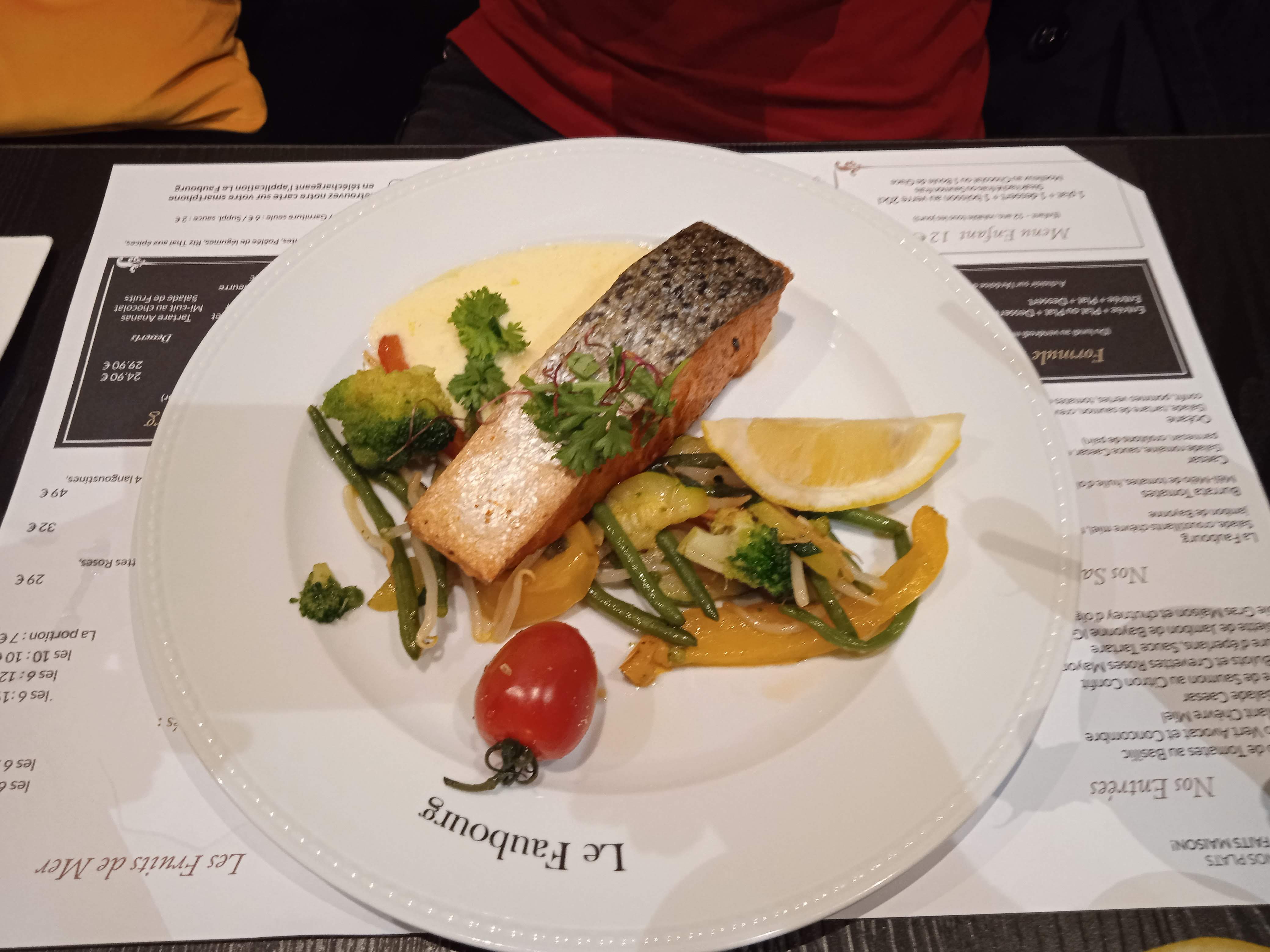 Parfait, nous avons organisé le repas de communion de ma fille au Faubourg. Les plats étaient délicieux, copieux et une belle présentation. Le service parfait, le personnel est efficace et très sympathique