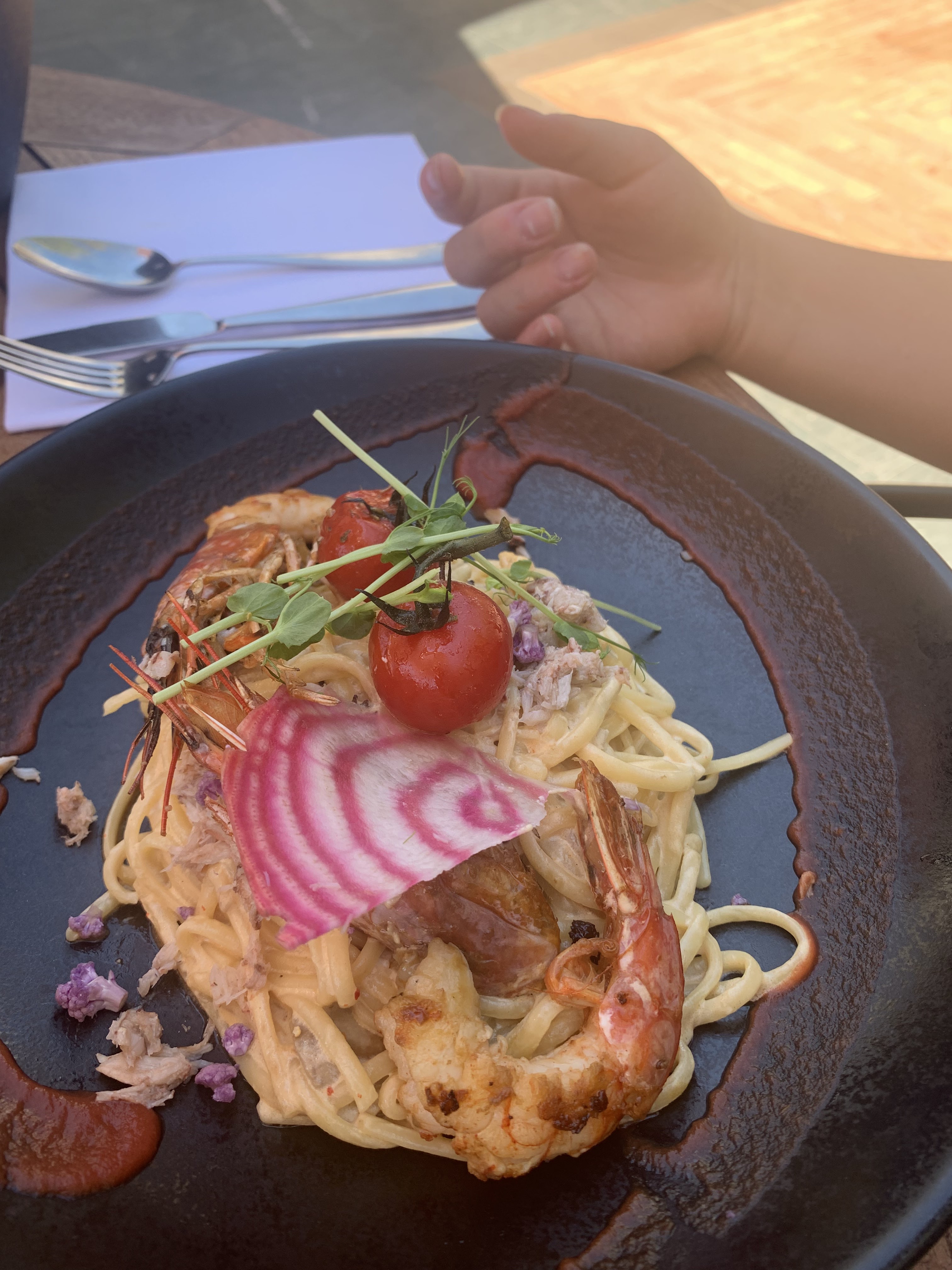 Un lieu idyllique. Des plats savoureux. Nous avons pris les pâtes aux fruits de mer elles étaient délicieuse. Je recommande également le nougat glacé maison.