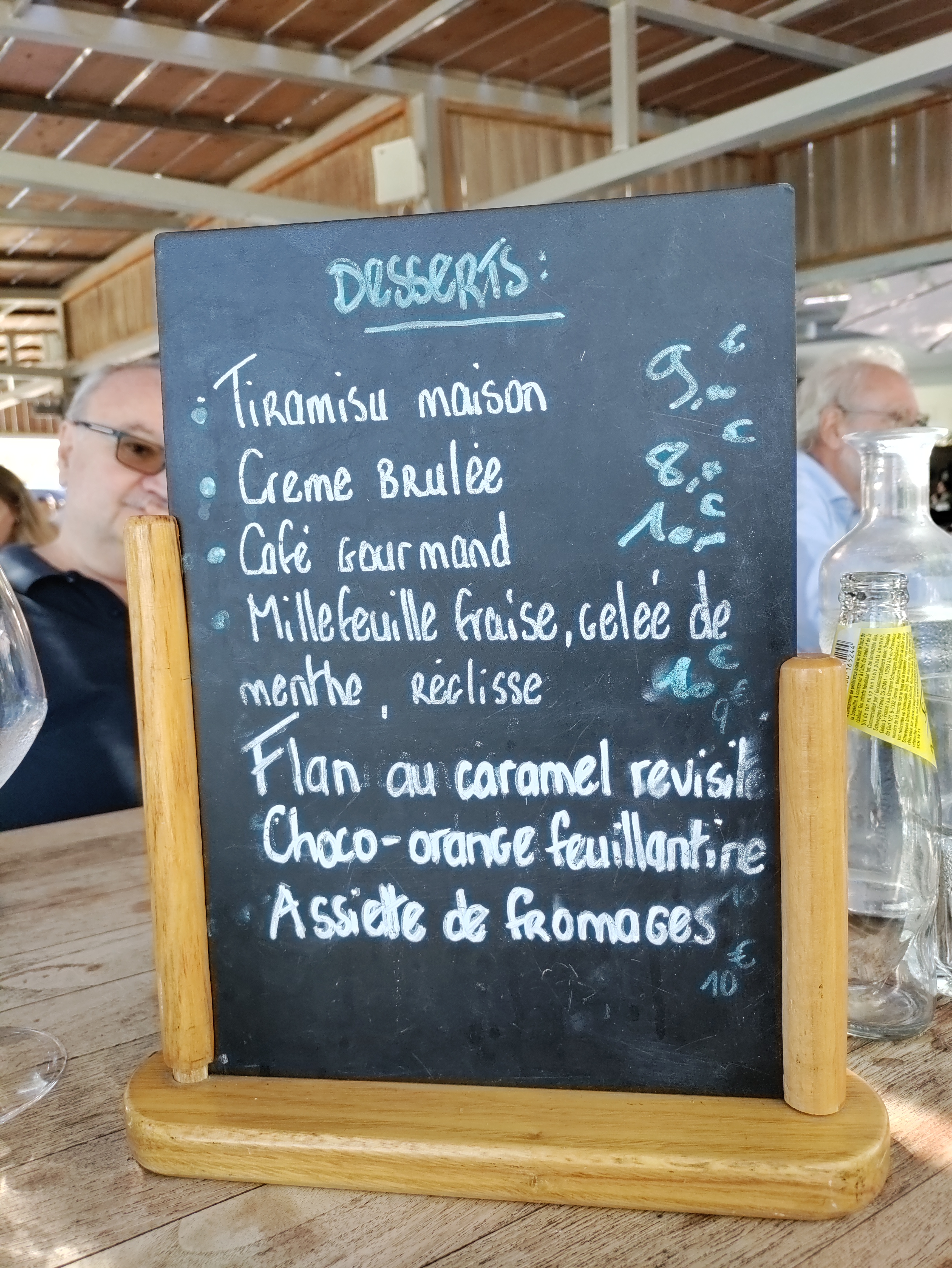 Bien situé sur la plage, l'accueil sympa. Un peu d'attente toutefois pour le service : 1 pression (servie chaude ...) 1 sirop à l'eau, 2 soupes de poisson. Enfin 2 desserts commandés mais trop d'attente (il fallait nous dire qu'ils nécessitaient 15mn au moins), alors nous sommes partis.
