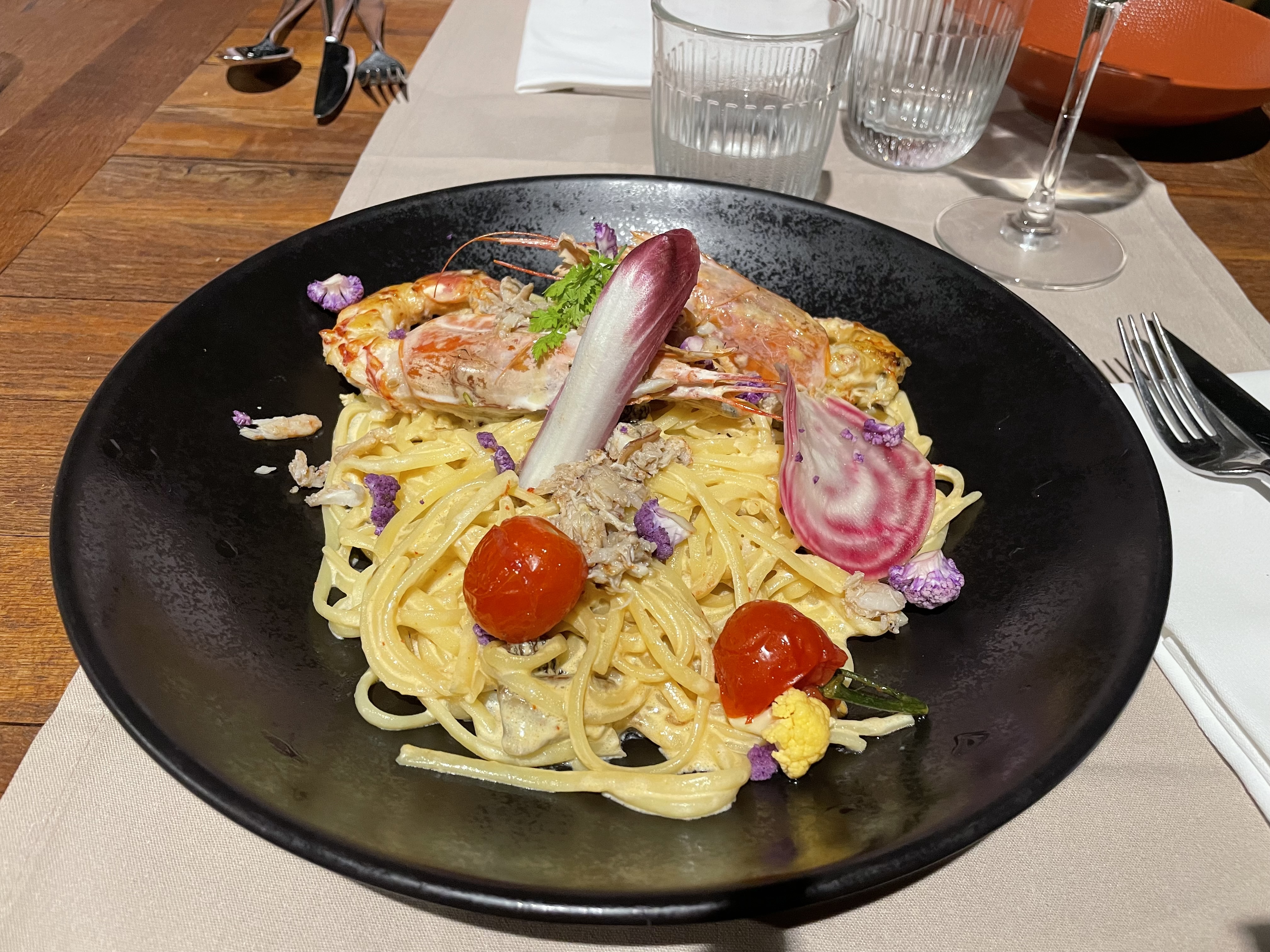 Le restaurant est sur la plage avec une vue exceptionnelle ! Nous y avons très bien mangé, le poisson est frais bien servi et les linguines à la chaire de crabe une tuerie. Le personnel au petit soin.