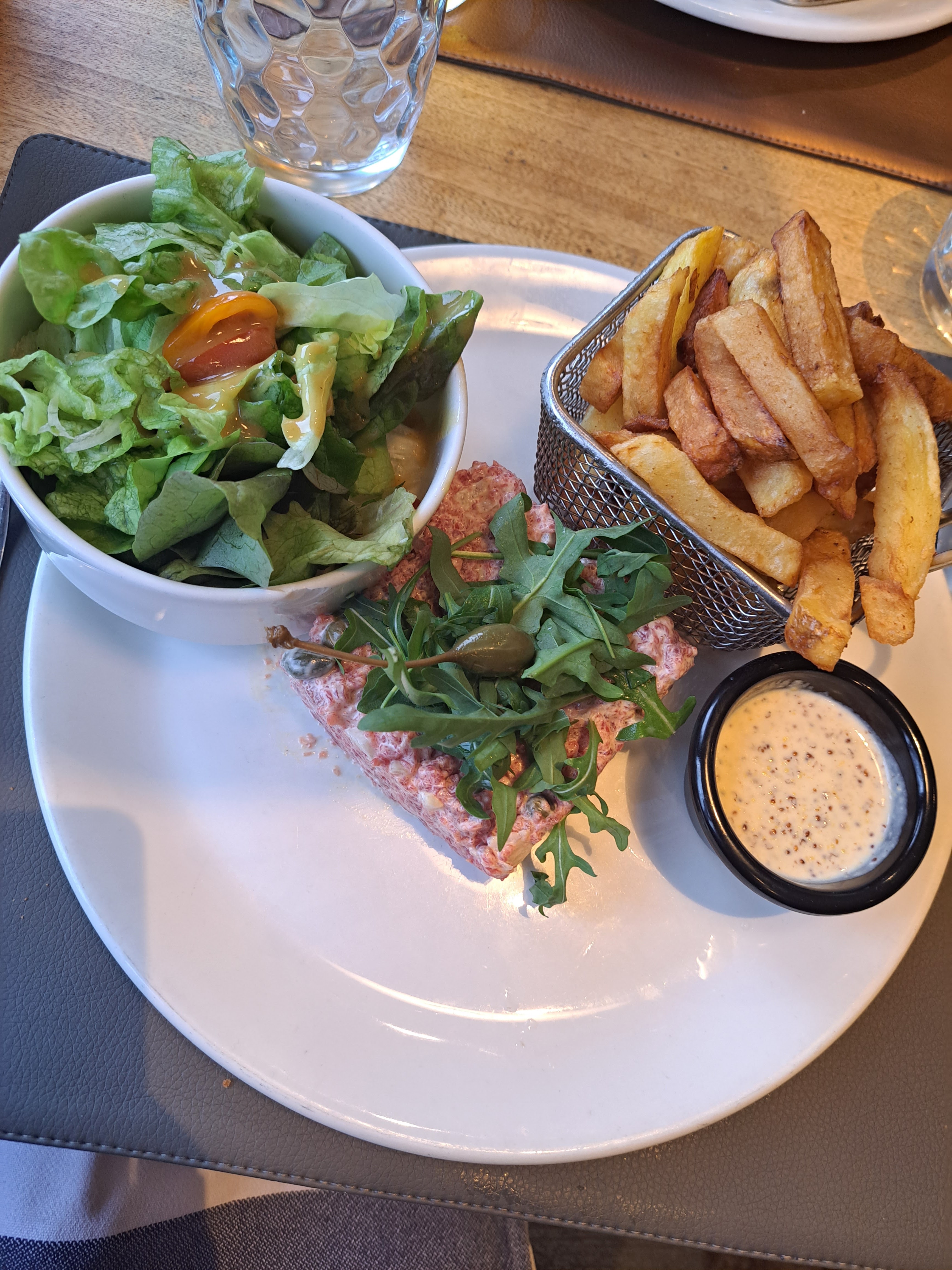 J'ai pris un steak tartare préparé qui n'avait que peu de goût. Le service était un peu long aussi, mais sans doute à cause du monde. Le personnel est sympathique. Je suis globalement un peu déçu.