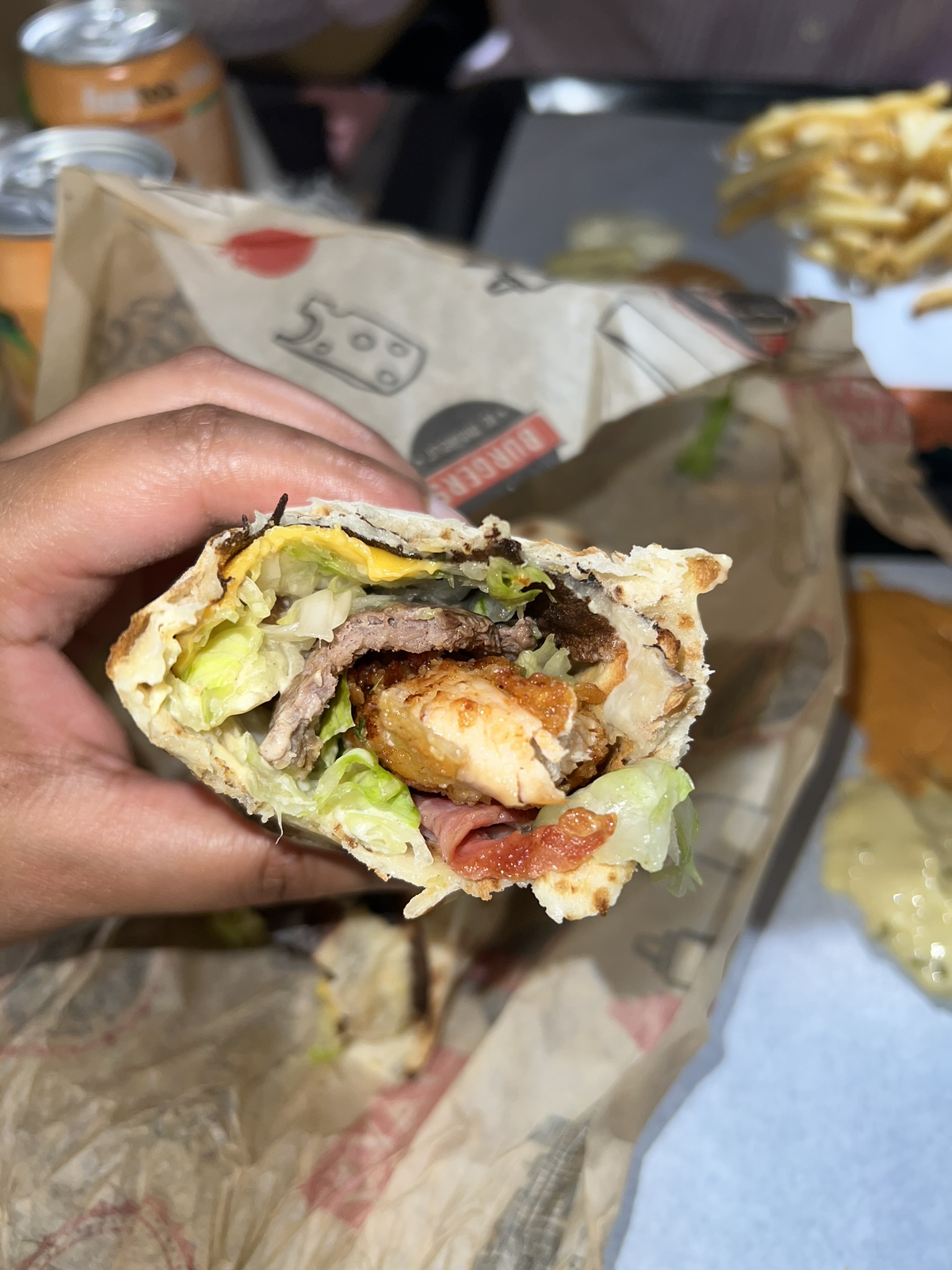 INFECTE. Je me suis rendu une première fois dans ce fast-food, ce fut une catastrophe, mon conjoint a insisté pour qu’on leur donne une deuxième chance, c’était pire que la première fois ( visite à 8 mois d’intervalle) MAUVAIS il n y’a pas d’autre mot qui définirait mieux le goût
