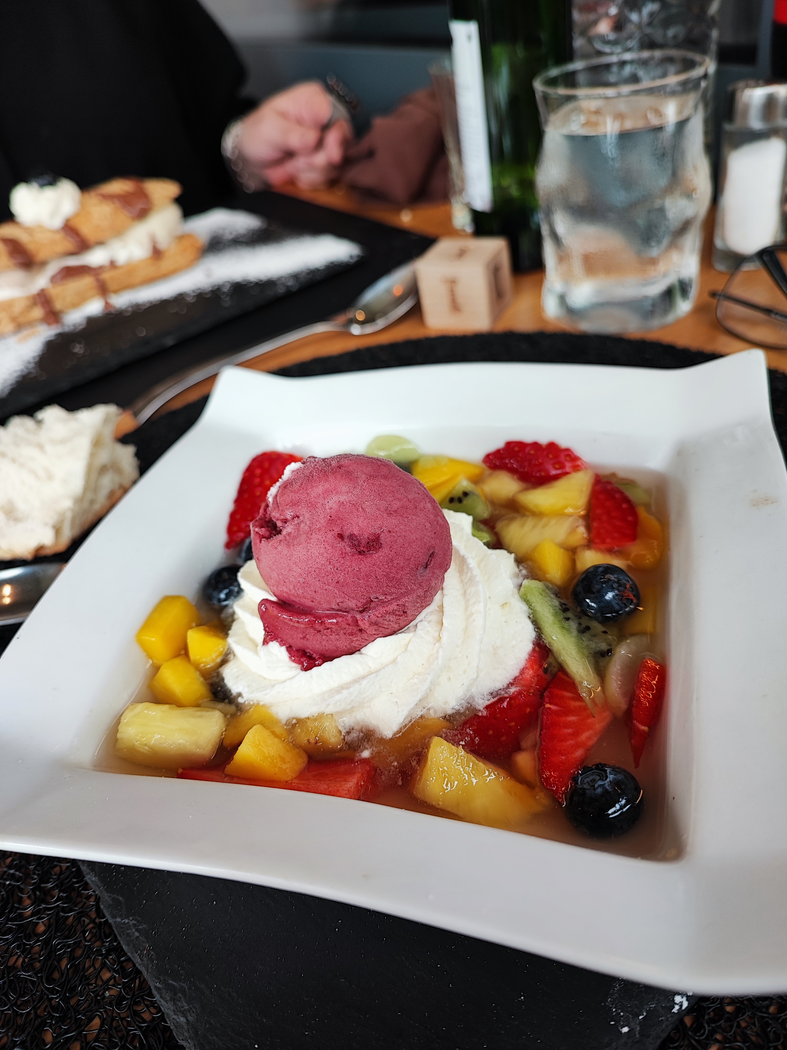 Nous sommes arrivés juste au moment où ils devaient fermer, mais nous avons demandé avec insolence si nous pouvions prendre un verre. Pas de problème là-bas. Alors que d'autres personnes prenaient encore du café/dessert, nous avons demandé à l'assiette de fromages, qui était délicieuse. J'y retournerai certainement et aussi avec les visiteurs britanniques