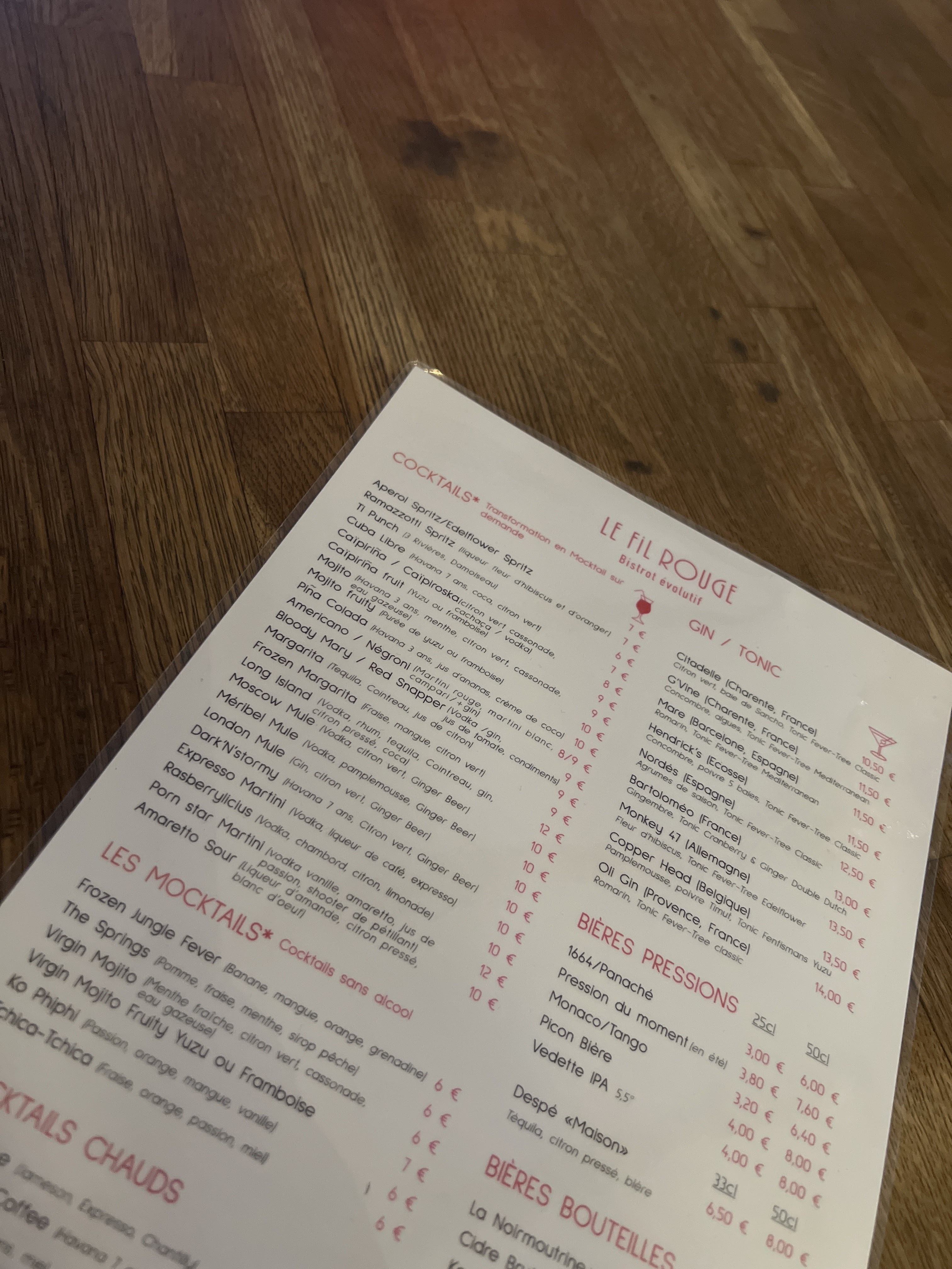 Le Fil Rouge est un endroit convivial avec de très bons cocktails, une cuisine maîtrisée avec des produits frais et de saison, et un service aux petits soins (Merci Calvin !). A tester absolument !