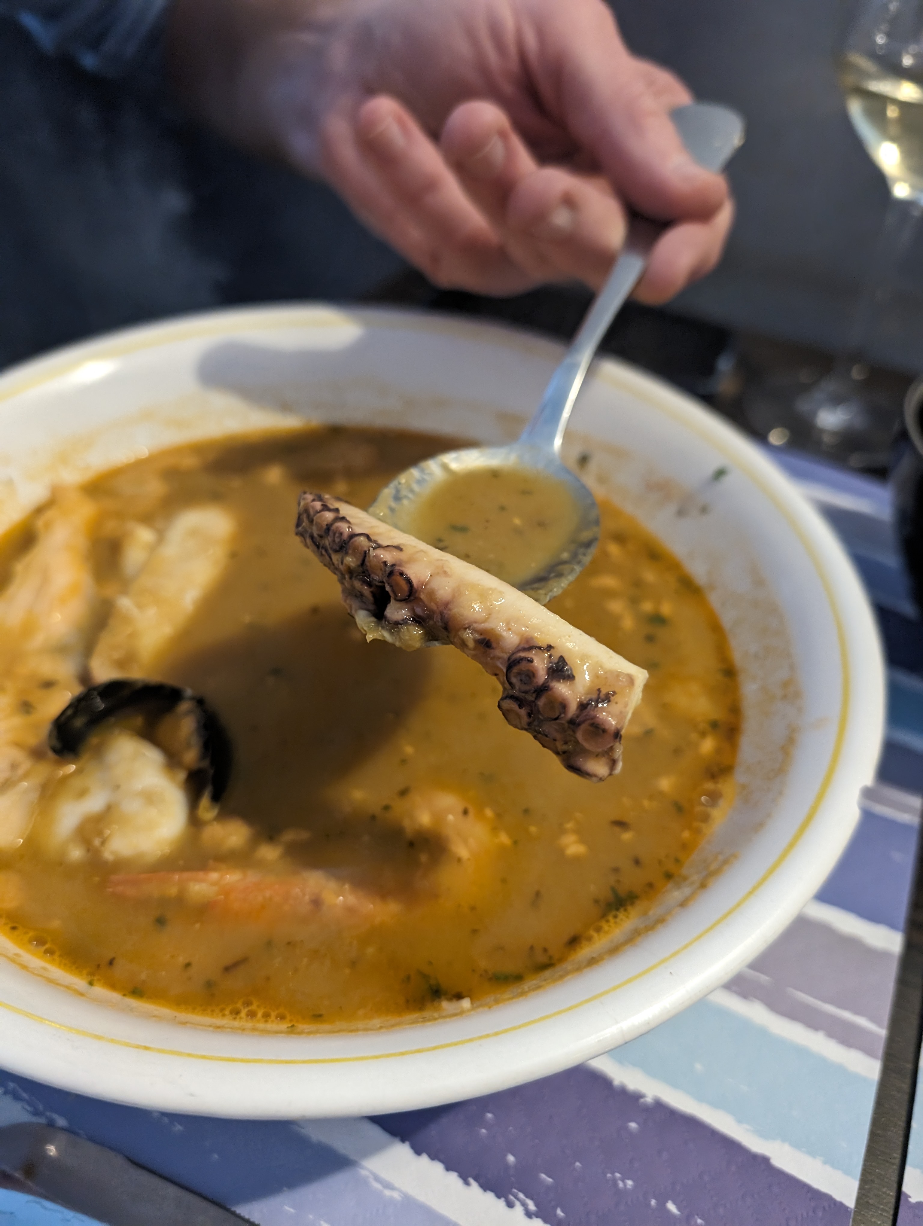 Très bon restaurant de poisson. Le service est un peu lent mais je comprends que c'est un petit restaurant familial et pas beaucoup de personnel. La soupe de poisson est un chef-d'œuvre ! J'ai oublié de prendre une photo. 🙂