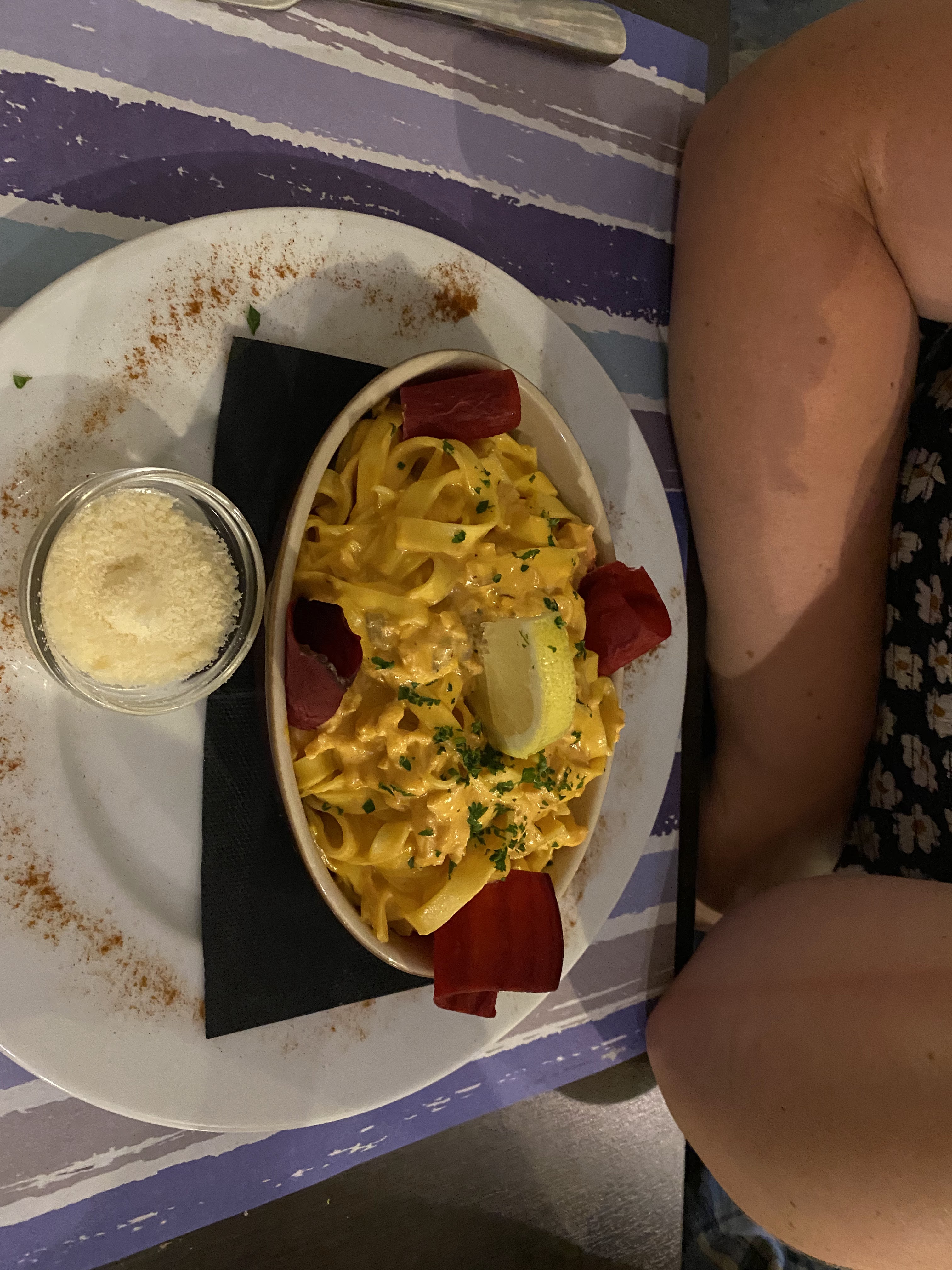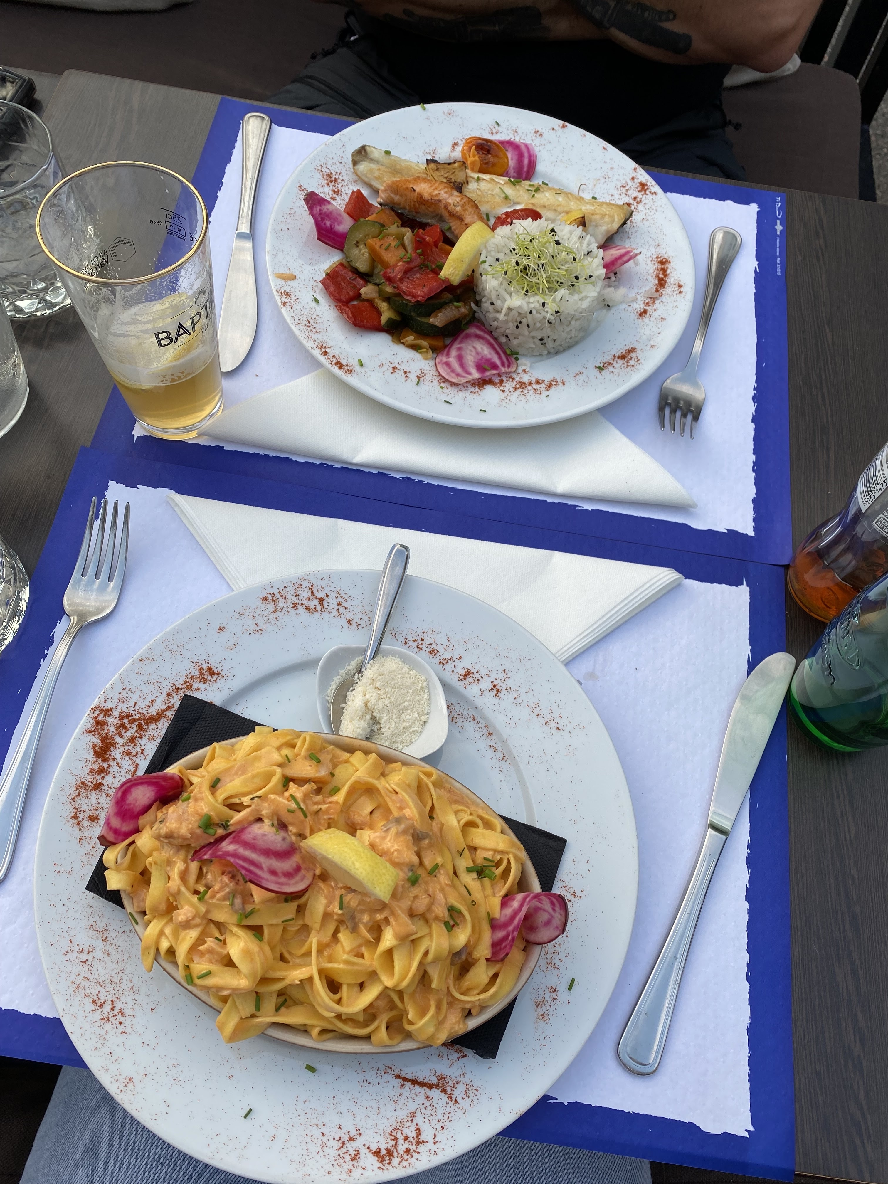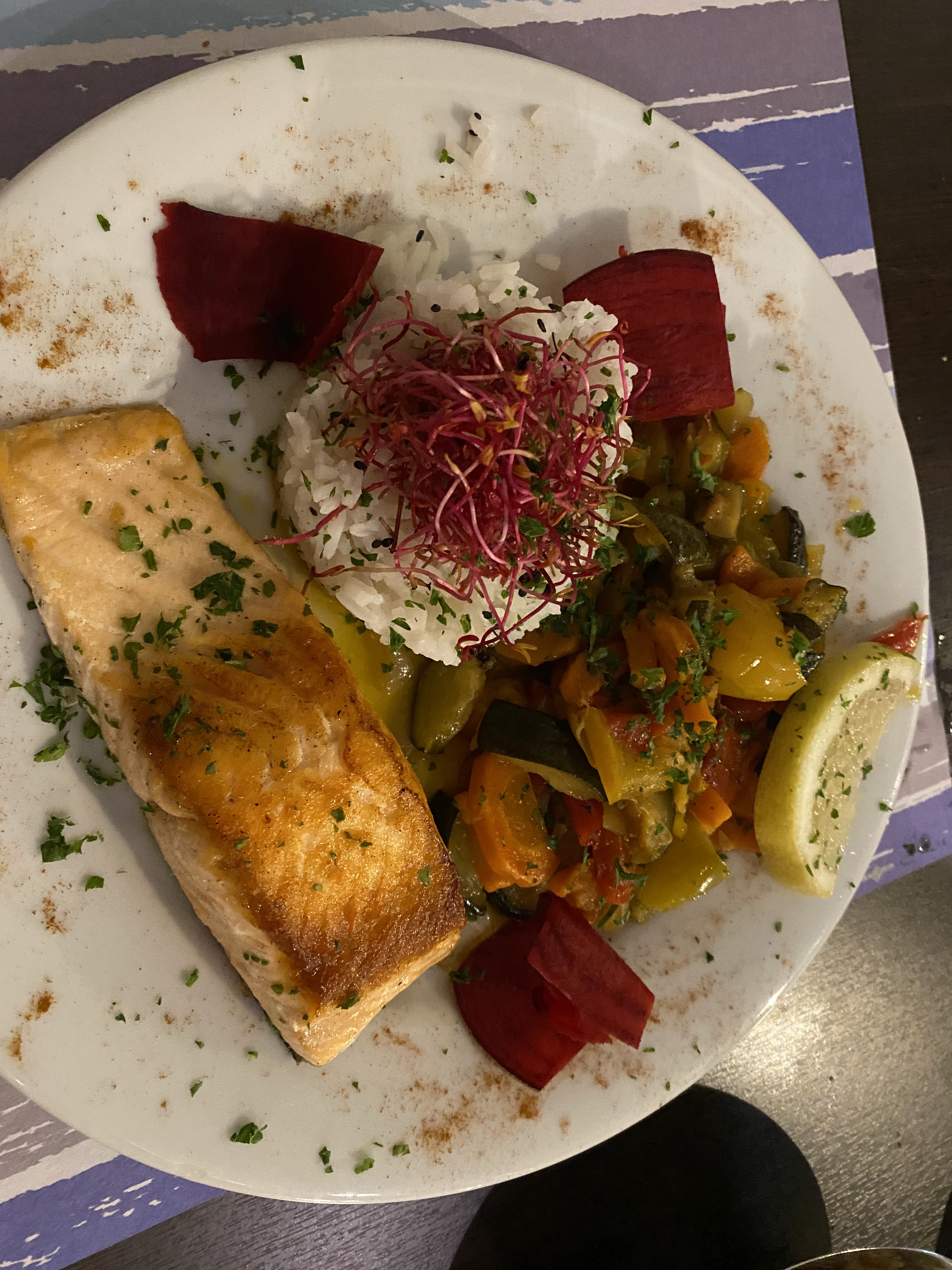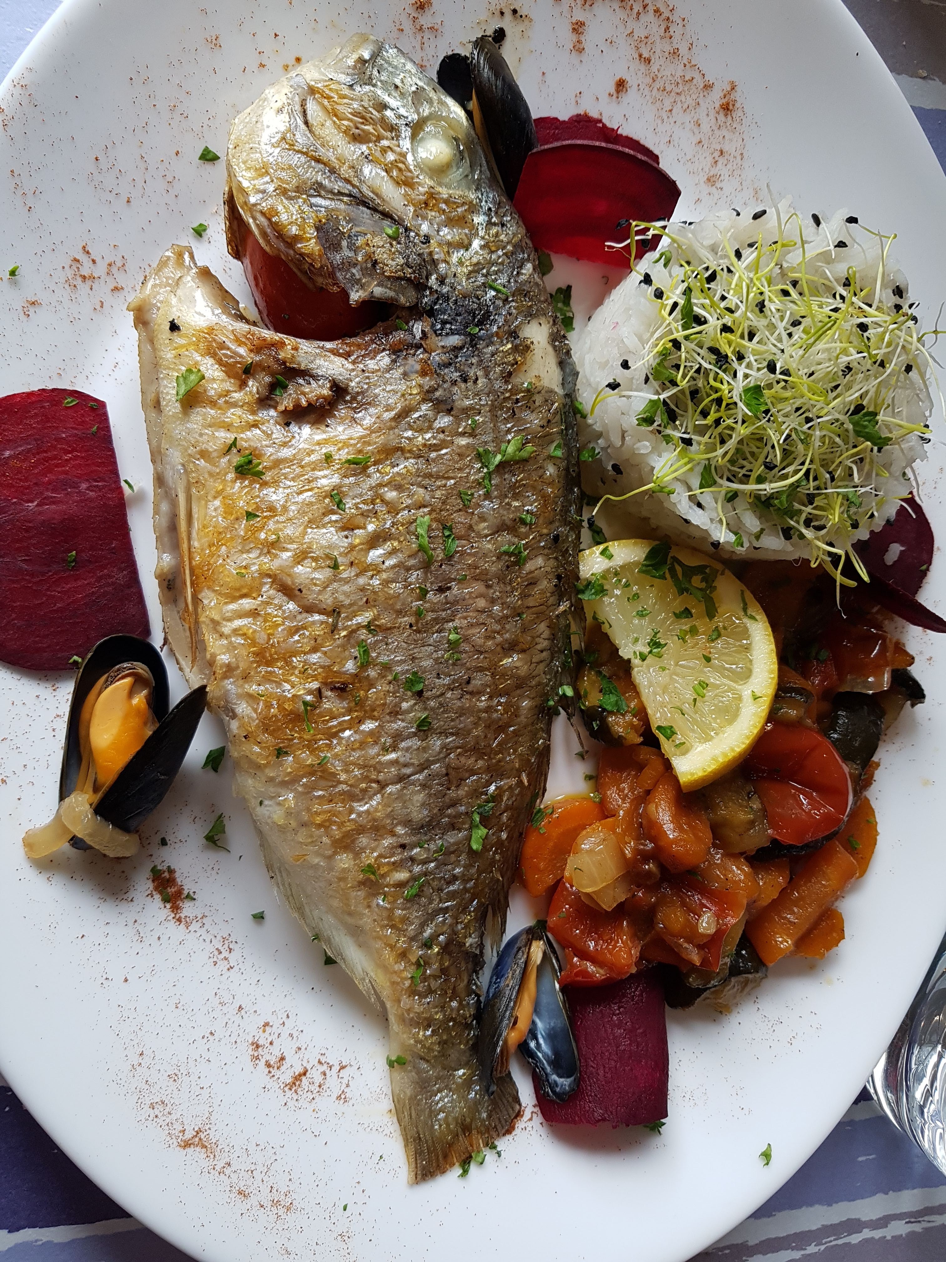 Plats délicieux réalisés avec du poisson pêché la veille, serveur sympathique et à l’écoute, terrasse spacieuse et confortable (hormis les voitures qui passent dans la rue logique), je recommande à 1000% !