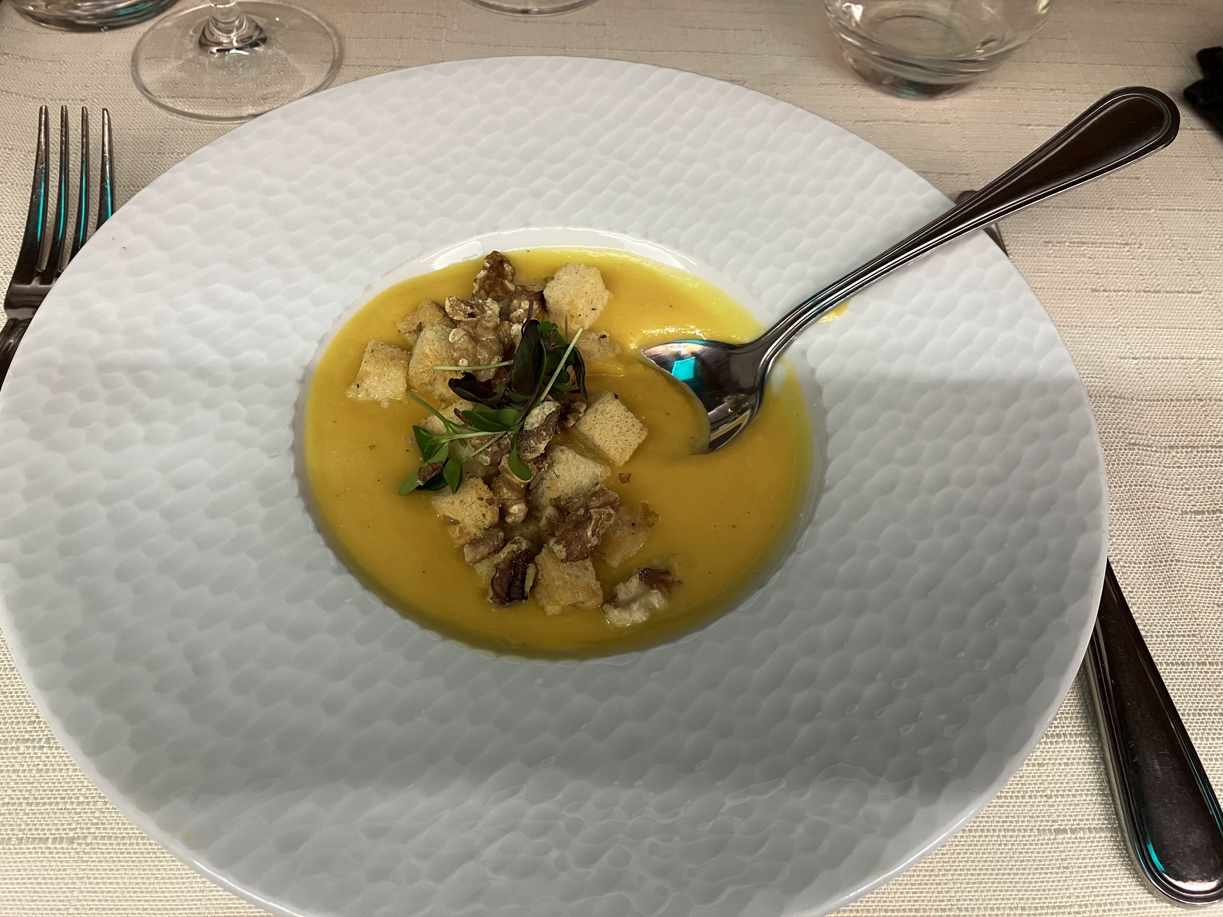 Super découverte personnel agréable et au Top .... On mange a merveille... Seul petit bémol...il faisait un peu froid dans la salle (merci M Macron )...