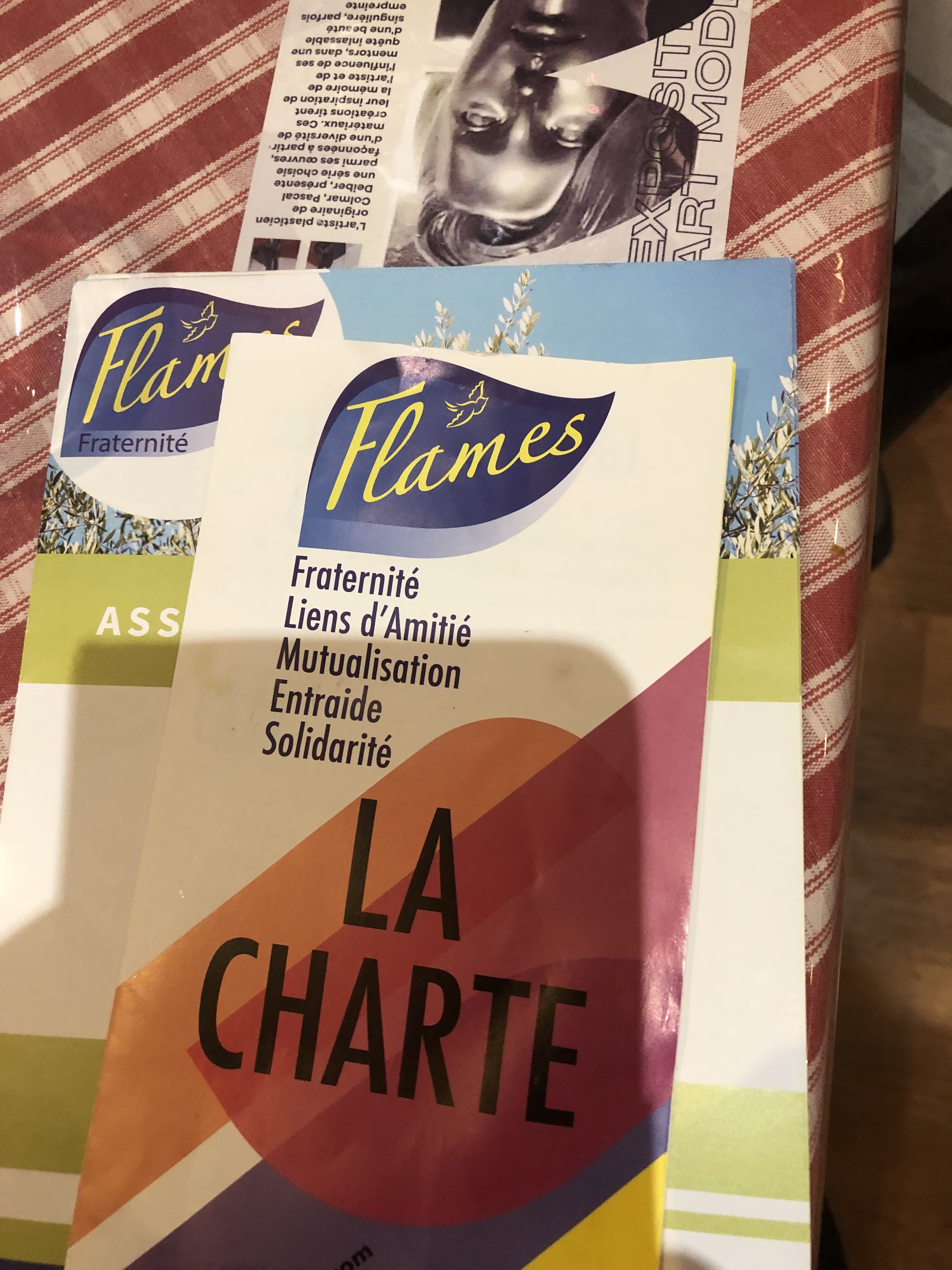 Cet endroit existe depuis un peu plus qu'un an. Il remplace ce qui avant s'appelait la Libellule mais qui n'était pas mieux que tous les autres commerces à visée touristique (certes on y voyait des livres neufs mais interdiction de les toucher sans les acheter). Le Flames est un lieu ou on peut se sentir bien, surtout si on vient aux heures qui ne sont pas des heures de repas, on peut alors s'y installer pour déguster par exemple un déssert-maison avec un bon café ou thé, tout en feuilletant un des livres d'occasion disposés dans les étagères murales. On peut aussi soi-même déposer des livres à condition qu'ils soient en très bon état, et peu nombreux car la place est limitée. Le décor et l'ameublement reflètent un esprit récup mais cohérent, comme on pourrait le faire chez soi justement. Le personnel semble ouvert aux discussions, j'ai vu des personnes entrer pour commander juste un café et une discussion s'est engagée en langue étrangère, ça n'a duré que le temps de préparer, déguster et régler le café, mais c'est ce genre d'instants conviviaux qui je pense font l'intéret du Flames ! Il s'agit d'un café-restaurant tenu par une association, et non d'un café-associatif comme je pensais au début ; les horaires d'ouverture peuvent parfois fluctuer en fonction du personnel et/ou des bénévoles présents. Ce n'est pas un fast-food non plus, c'est plutot à la bonne franquette et on y sert une cuisine simple gouteuse et basée sur la qualité. Pas mal de touristes viennent se perdre jusqu'ici, mais ce lieu ne cherche pas à les attirer particulièrement, il se veut accueillant et aimable envers tout client du moment qu'il se comporte correctement.