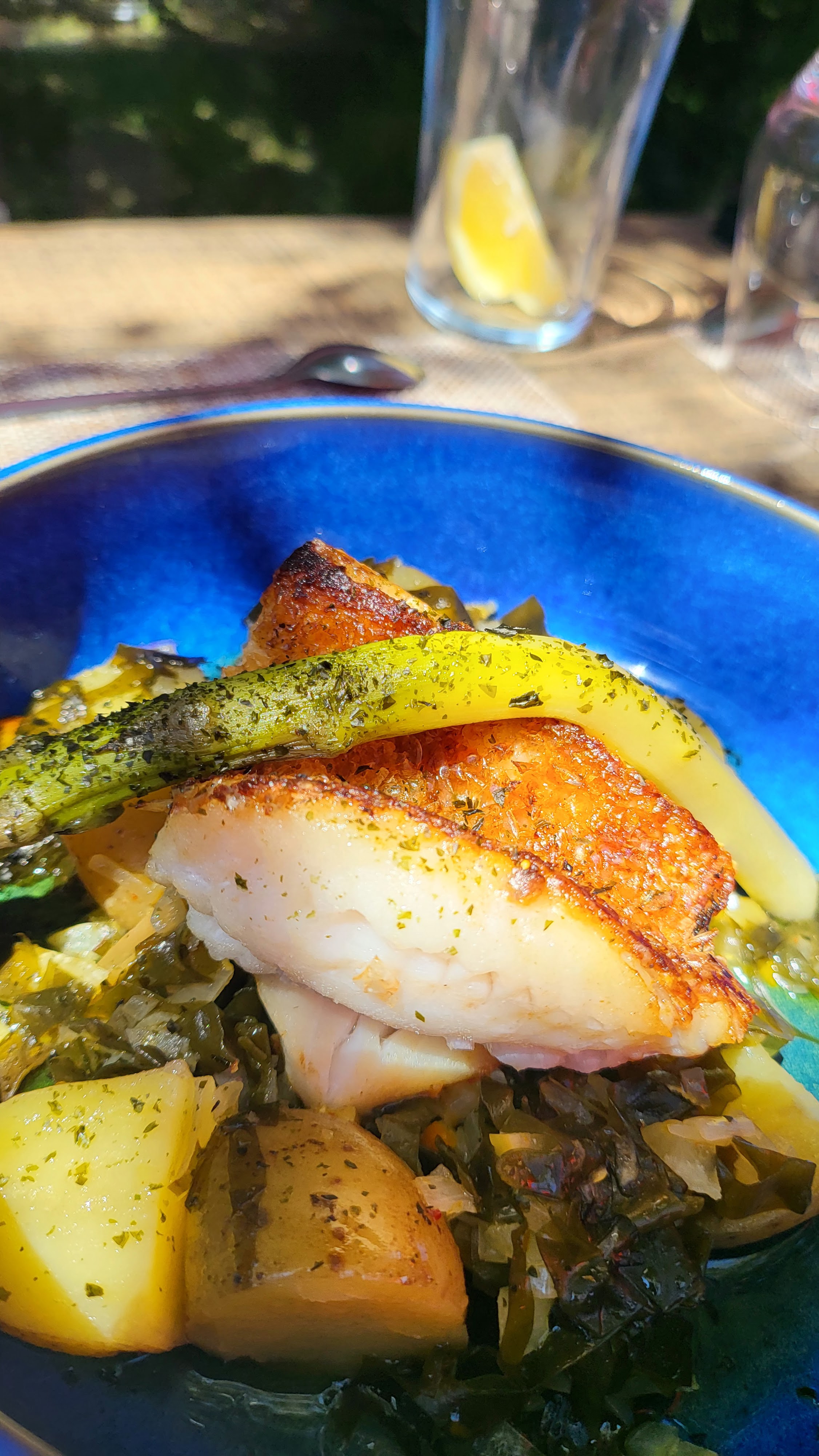 Excellent! Cadre très agréable. Accueil sympathique, l'équipe très pro et reactive, le service impeccable. Les règles d'hygiène et de distanciation sont respectées (rare dans les environs). Les plats sont copieux, frais, bien assaisonnés. Le poisson était succulent...Les enfants ont tout fini. A refaire sans hésitation!!!