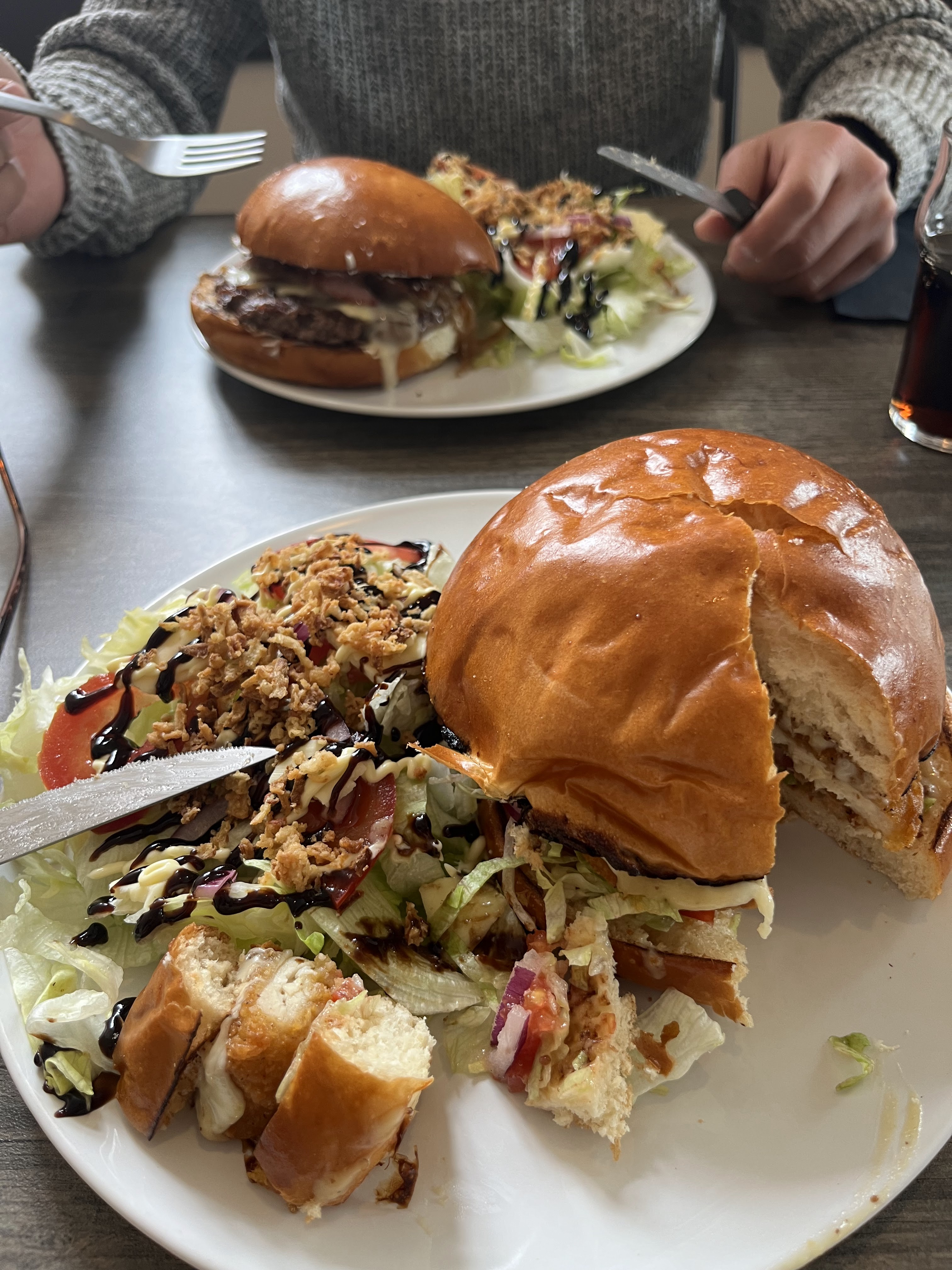 Repas de midi un excellent burger. Dommage qu'il n'y avait pas de dessert 😔