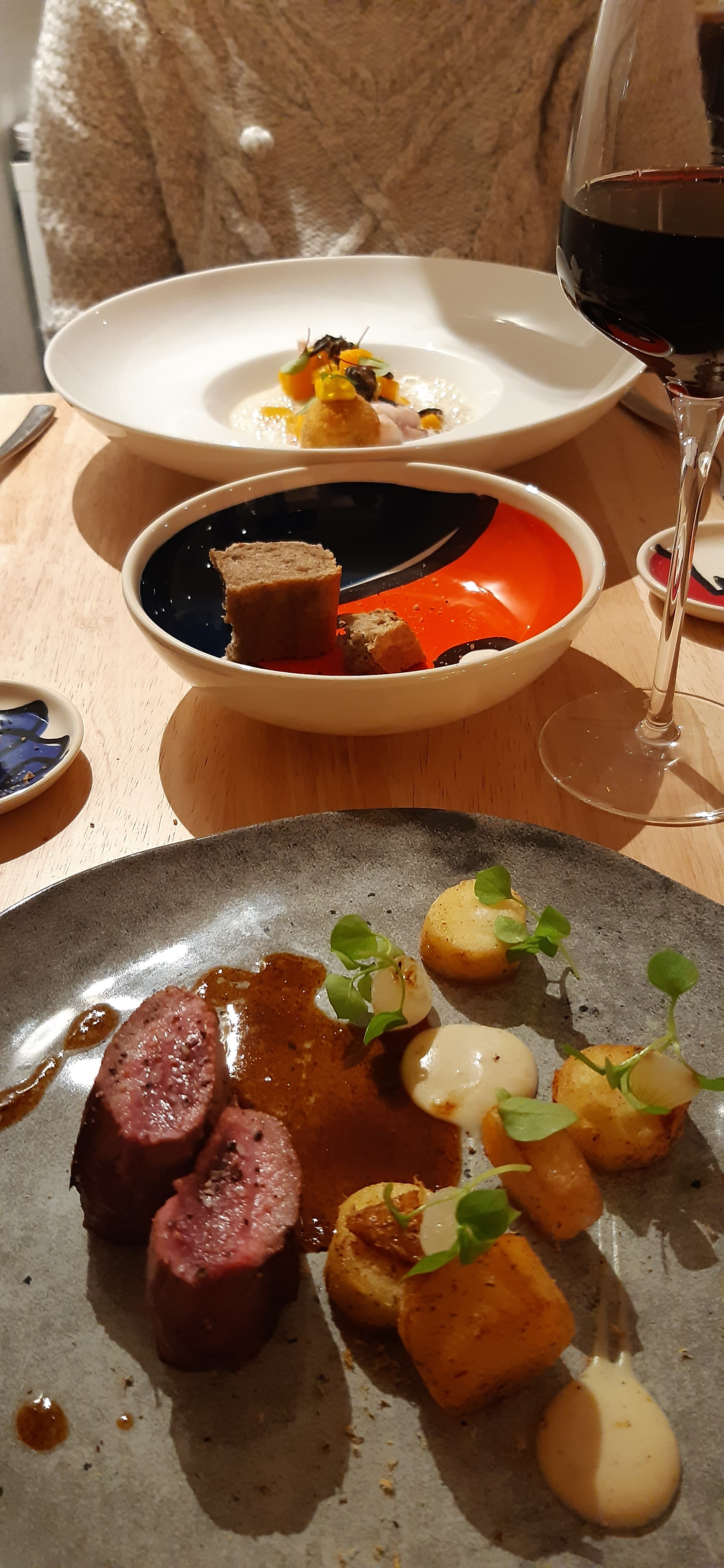 Une cuisine pleine de saveurs et de contraste de consistance et imaginative. Un cadre feutré et des tables bien espacées. Un grand plaisir au final.