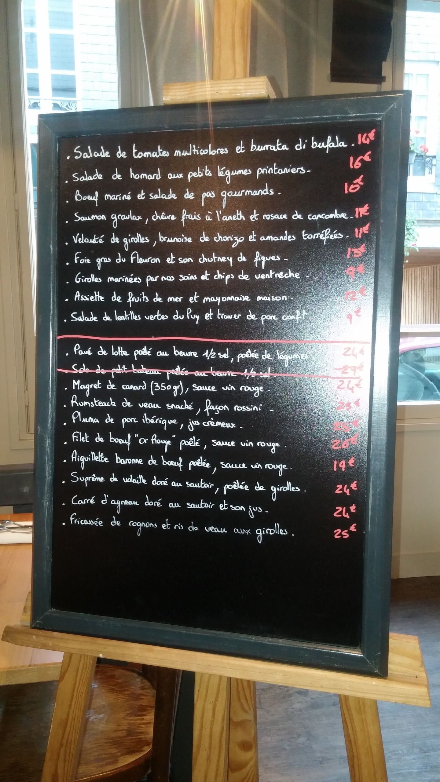 Honfleur un dimanche soir, il fait déjà nuit et nous cherchons de quoi apaiser notre faim sachant qu'à cette heure on trouve plutôt portes closes. Mon regard est attiré par la devanture d'un restaurant bistronomie, un terme fleurissant un peu partout malgré l'hiver. Le temps de garer notre modèle vintage, nous prenons place, nous sommes seuls néanmoins l'accueil est très chaleureux, la décoration sobre mais très soignée. Nous découvrons la carte, un choix éclectique sans verser dans tous les styles des resto-qui-font-du-tout-surgelé, c'est rassurant, on sait qu'on va déguster du frais. Pour ma part je m'oriente vers une poêlée de St Jacques et purée aux morceaux de truffes, un régal pour les papilles, extraordinaire, en dessert une tarte aux framboises et purée de mangue, tout simplement exquise...je ne vous fait pas le détail des vins ni des entrées, l'ensemble fut une merveilleuse découverte, un plaisir des sens et cela faisait longtemps que je n'avais pas vécu une telle émotion. J'ai oublié de préciser, les sanitaires sont d'une propreté incroyable et le dîner s'est déroulé sur un fond musical d'une rare qualité. Pour conclure, je vous suggère d'éviter les bouchons de la capitale aux heures de pointes et de prendre le temps de vous attabler dans ce Fleuron de la très bonne cuisine...