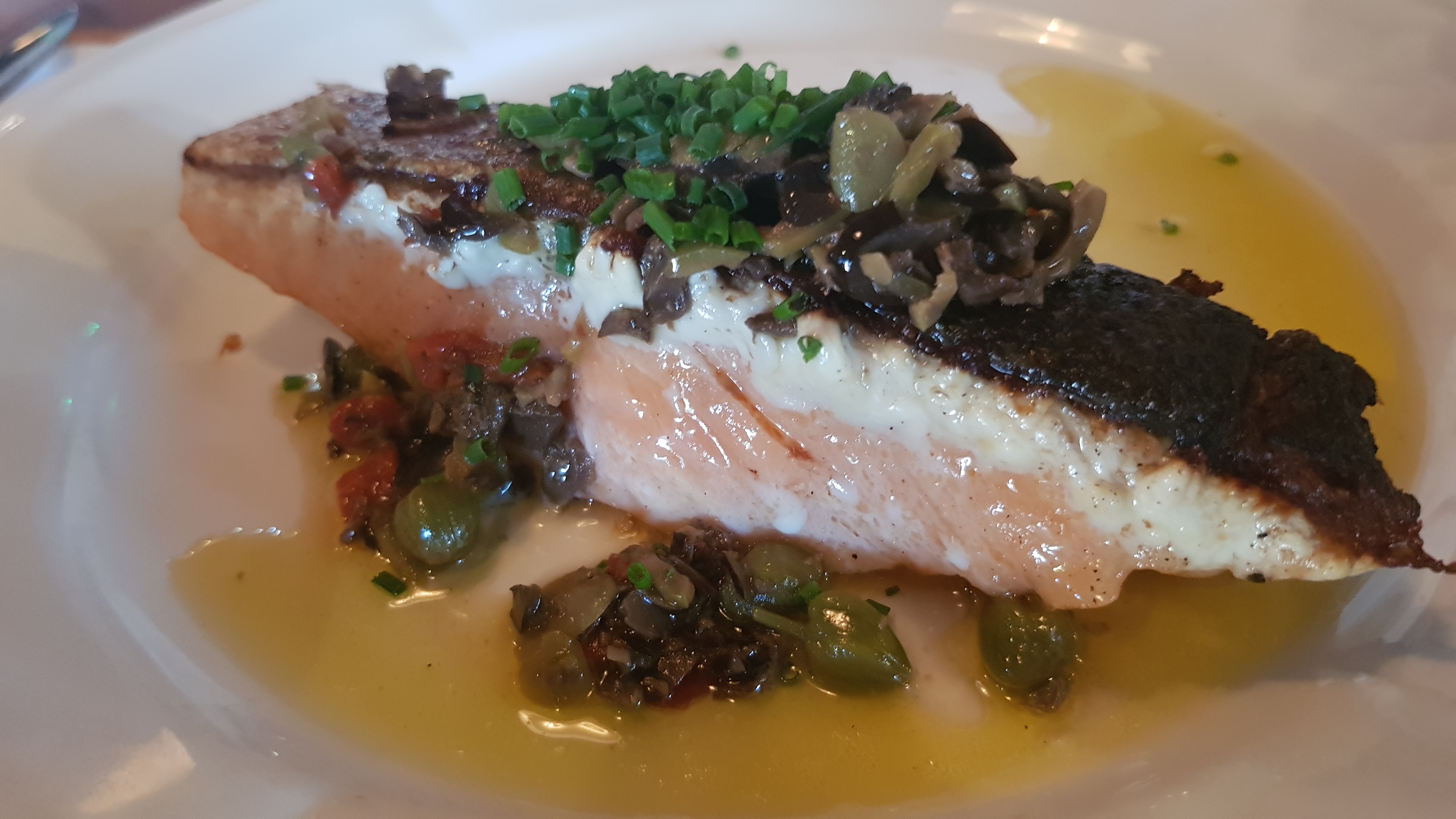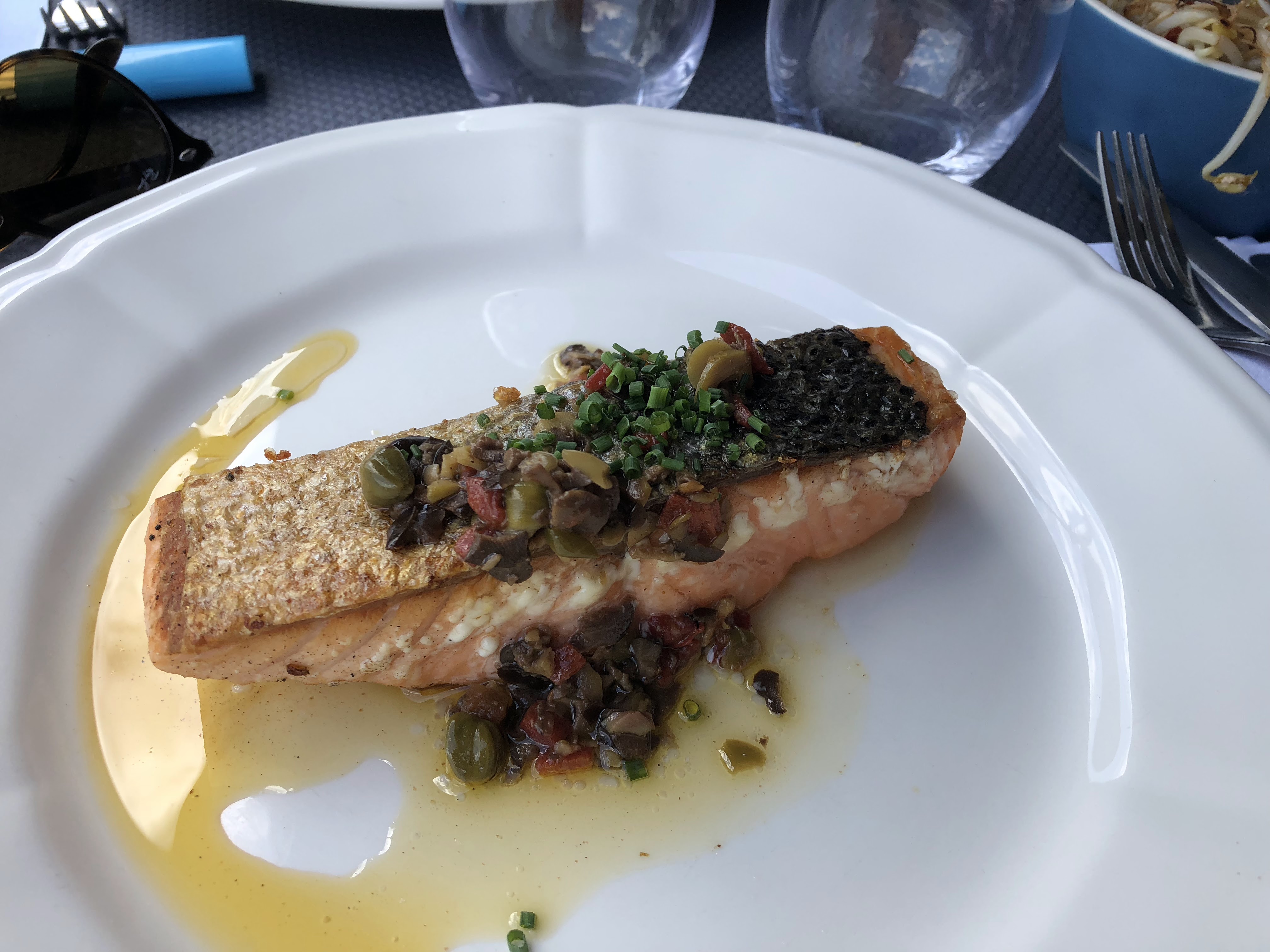 Par le plus grand des hasards nous nous sommes rendus ma femme et notre bébé dans ce restaurant. Nous avons pris un menu à la carte à 28e. En photo une entrée de saumon, en plat de la vollaile dans le fond et un filet d'espadon. La nourriture était divine, bien préparée et très goûtu. Les produits sont clairement frais et de qualité. Une adresse que nous conseillons sans réserve.