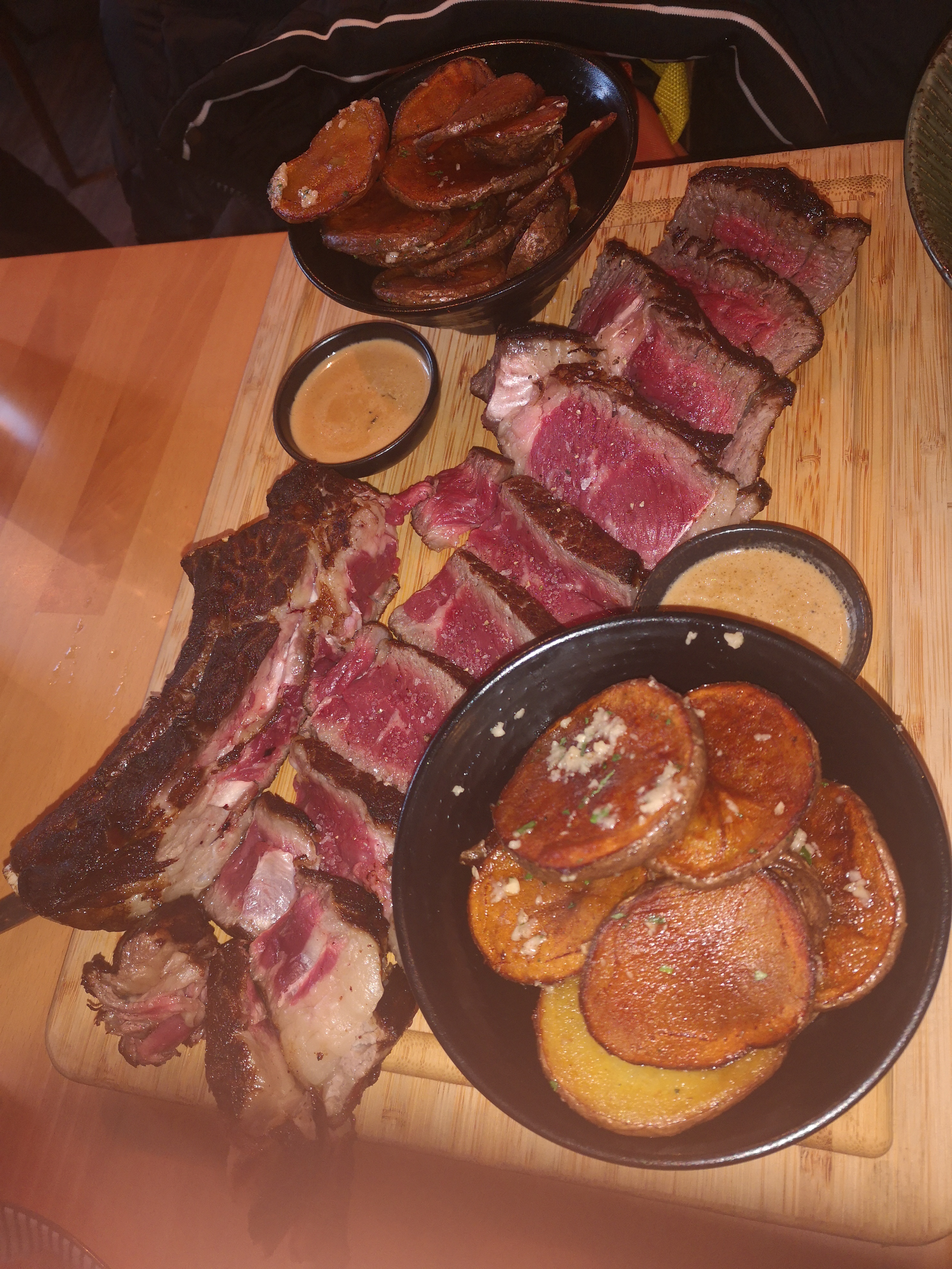 Excellente côte de bœuf de race Normande, cuisson parfaite. Belle découverte que la tarte normande pommes, camembert et caramel beurre salé. Un mélange subtil et harmonieux. 👍😋