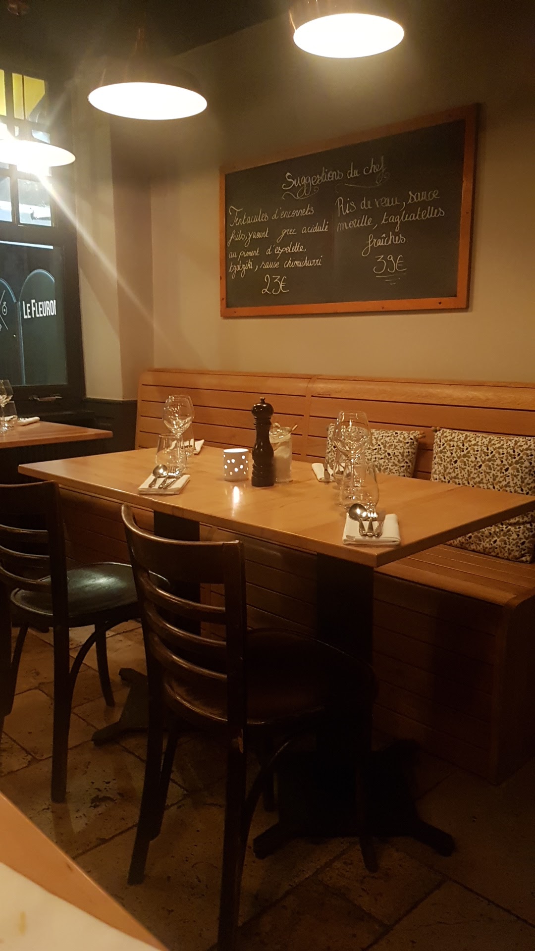 Excellent moment passé au Fleuron. Personnel très agréable et à l'écoute / disponible, repas excellemment bon et belle carte des vins. Carte assez exhaustive tout en étant pour tous les goûts, tout ce que l'on a pris était délicieux.
