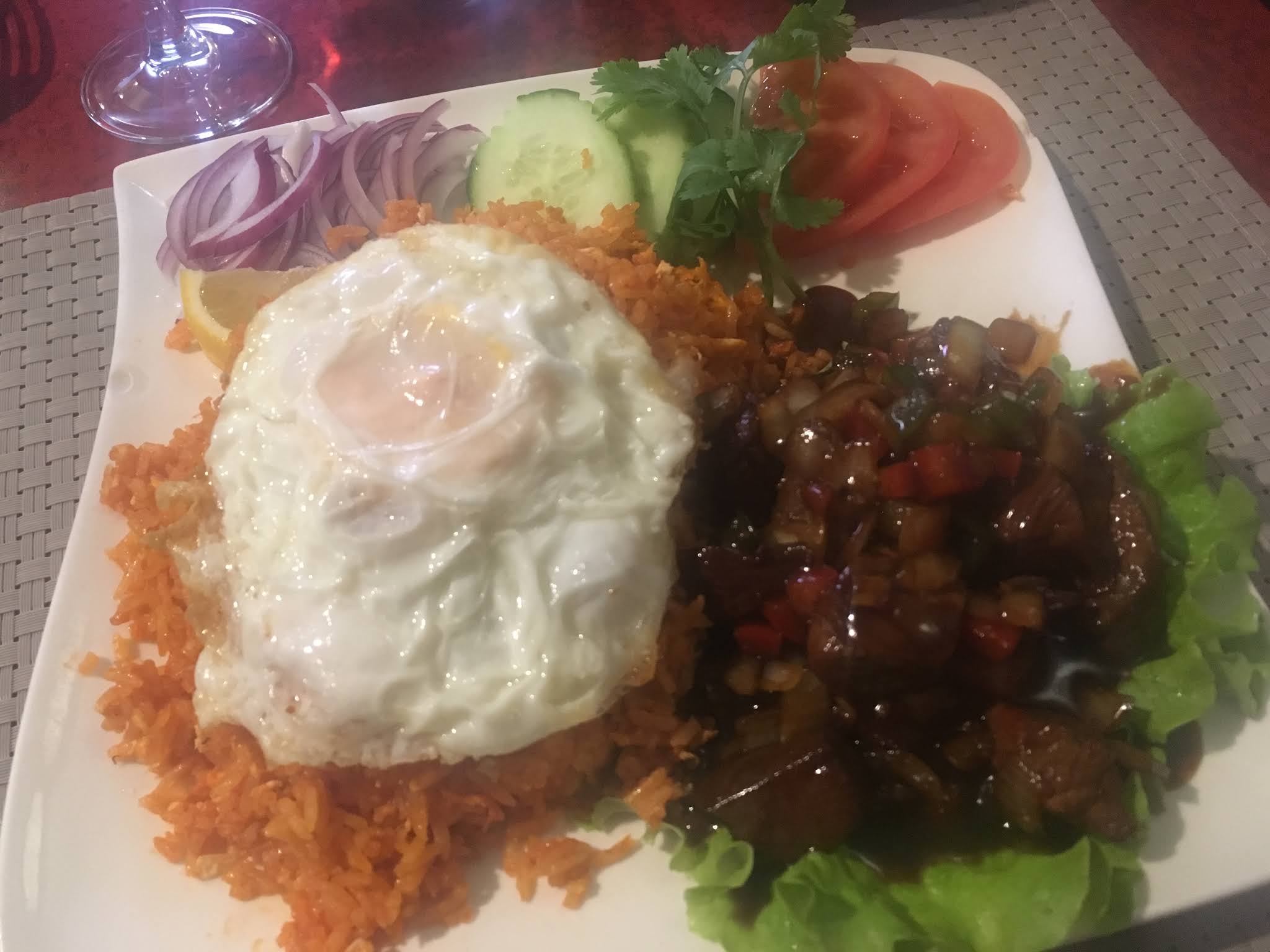 Boeuf lôc lac avec riz thaï absolument délicieux et très bien présenté. J'ai goûté la sauce du curry rouge et j'ai adoré aussi. Je vais sûrement revenir ! Service très agréable également.