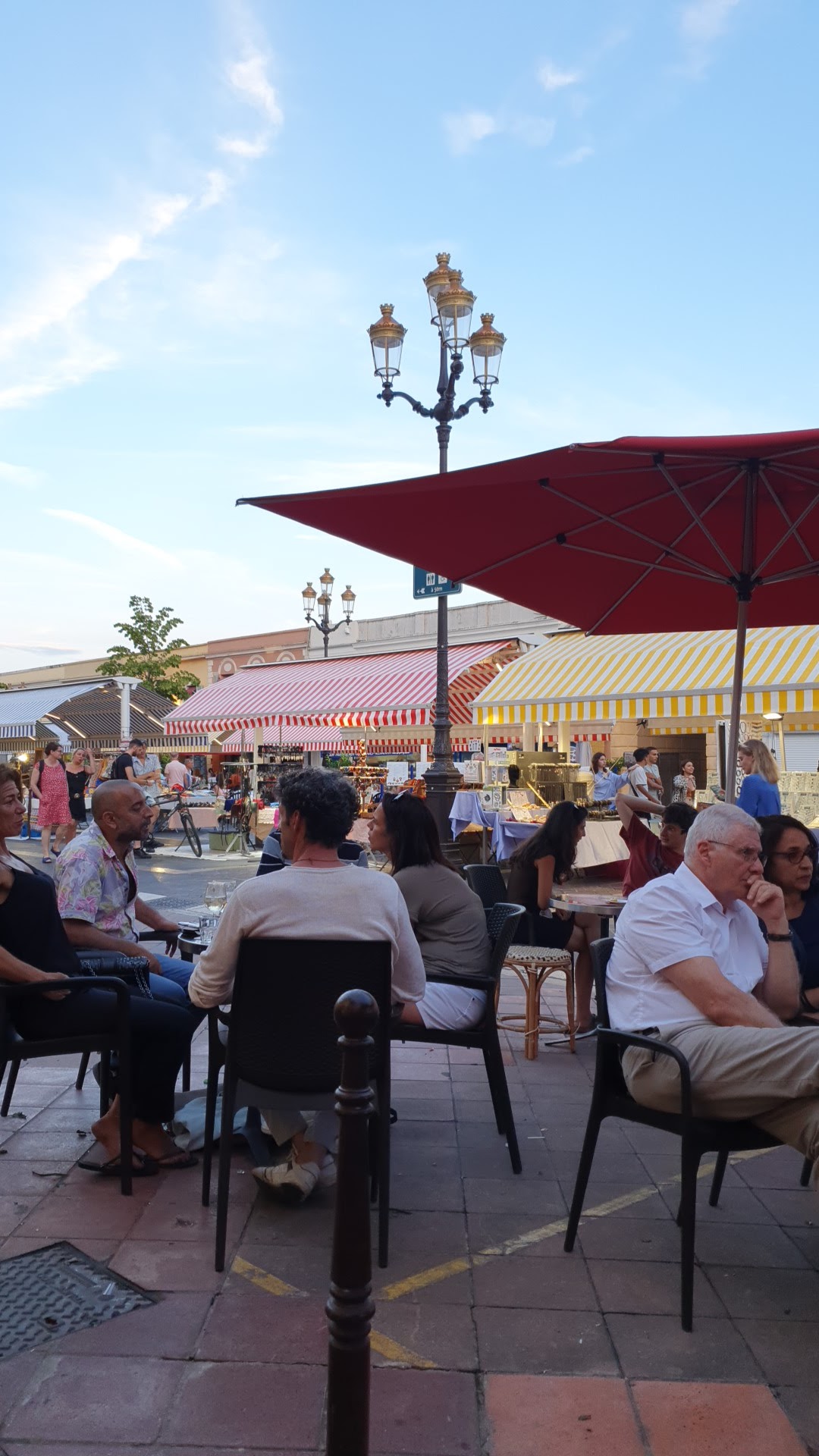 c'était un restaurant très fréquenté avec de nombreuses places assises à l'extérieur. nous avons apprécié la musique live du groupe de jazz. notre salade niçoise, notre omelette et notre socca étaient savoureuses. le service était en fait assez rapide jusqu'à la toute fin lorsque nous voulions partir. et avons dû attendre longtemps pour attirer l'attention des serveurs. est compréhensible... et heureusement, nous avions juste assez d'argent. dans l'ensemble, ce fut une bonne expérience... mais pas si l'on dispose de peu de temps.