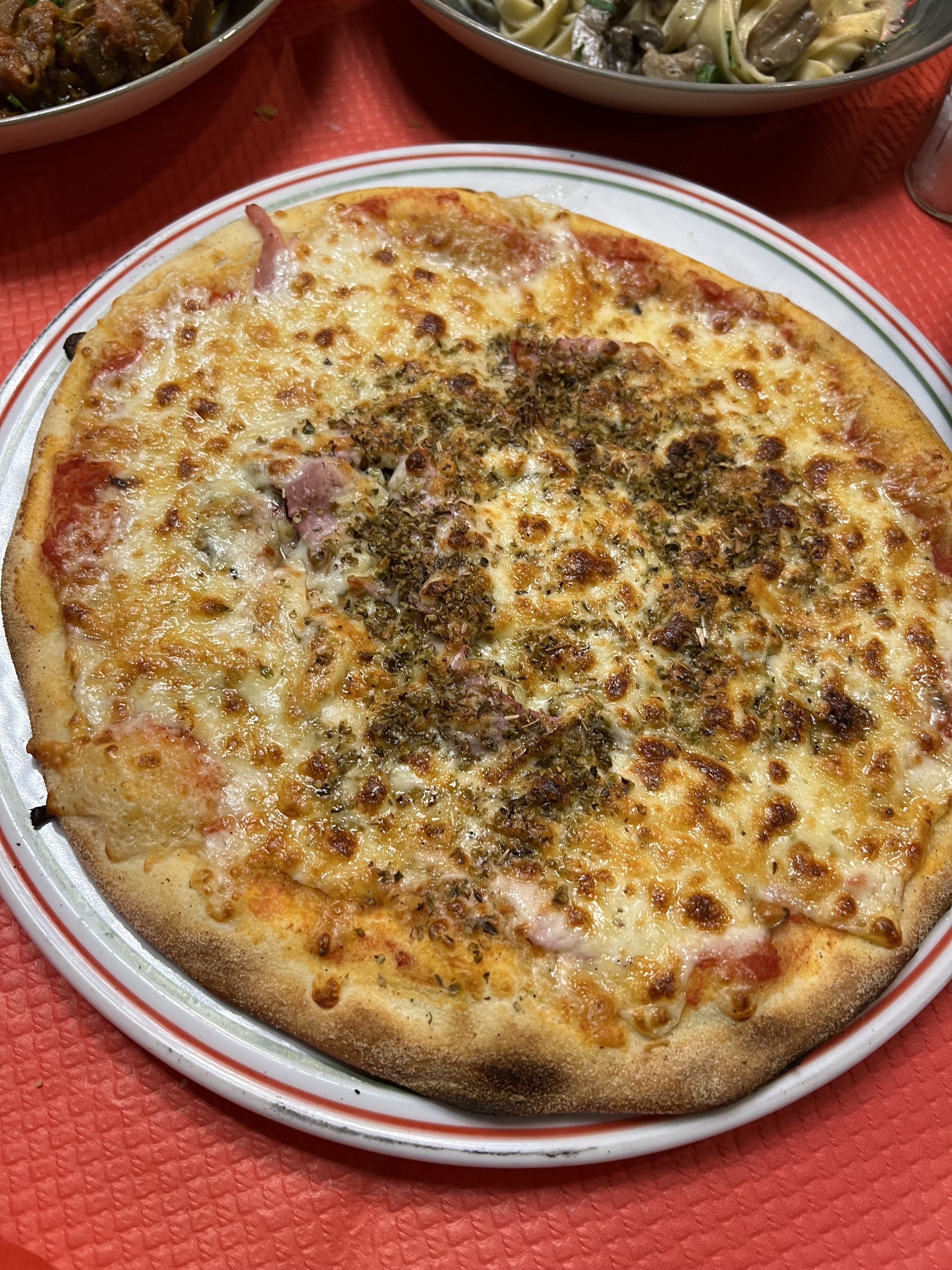 Notre première visite au restaurant à Nice, le service était très rapide et le personnel était sympathique. Comme il était très tard dans la journée à cause de l'heure de notre arrivée, nous n'avions pas trop faim, nous n'avions donc qu'une pizza à partager entre nous. Nous avons commandé la pizza quatre saisons, composée de fromage, jambon, œuf et artichaut. La pizza elle-même était très bonne, une base décente et suffisamment de garnitures pour chaque tranche. Les saveurs se mariaient également bien, ce qui me surprend. Le seul bémol est le prix, environ 16 € pour une pizza. J'avais vu moins cher dans le coin, mais probablement parce qu'il se trouve dans la partie touristique de Nice, le prix est plus élevé.