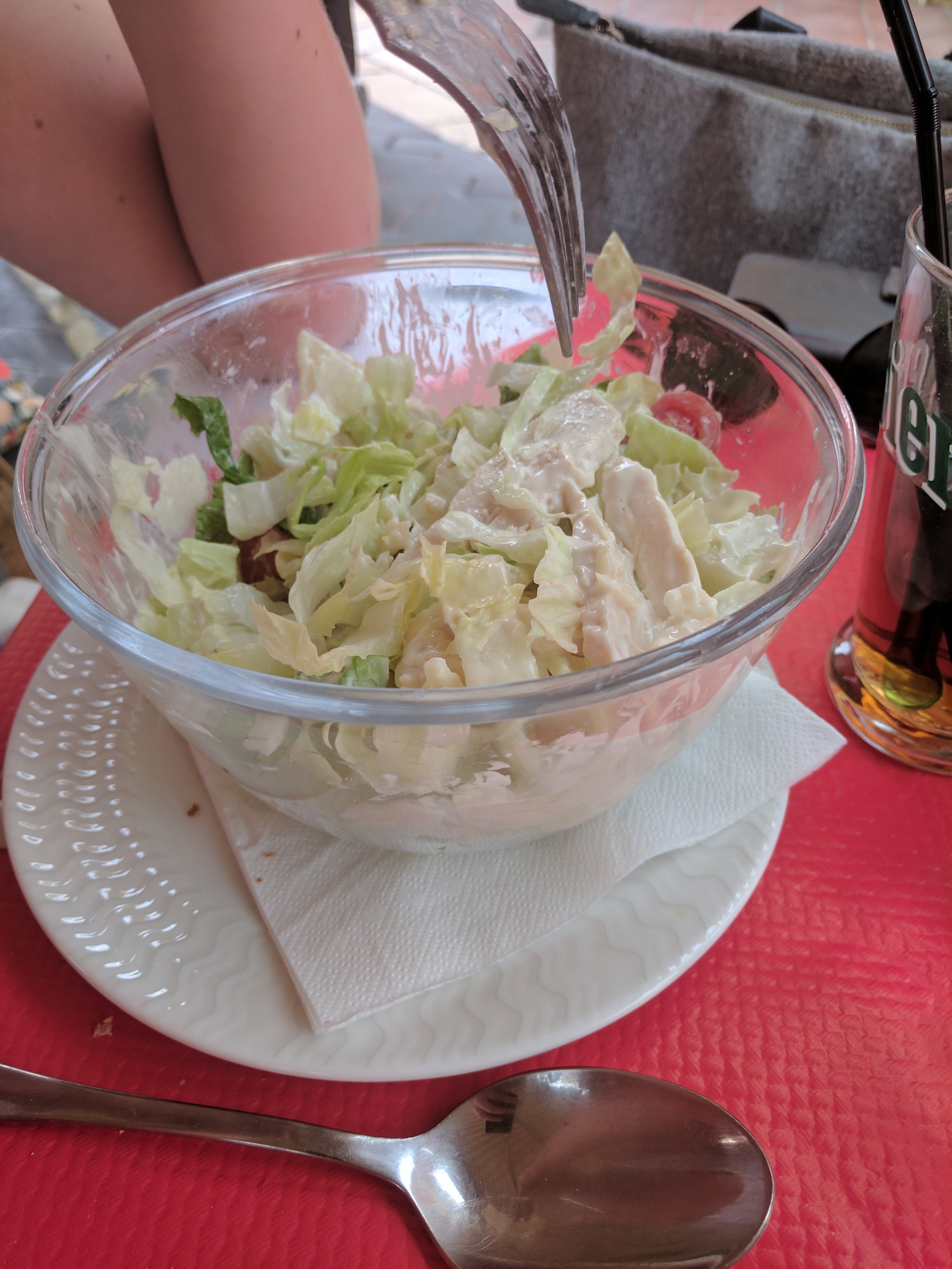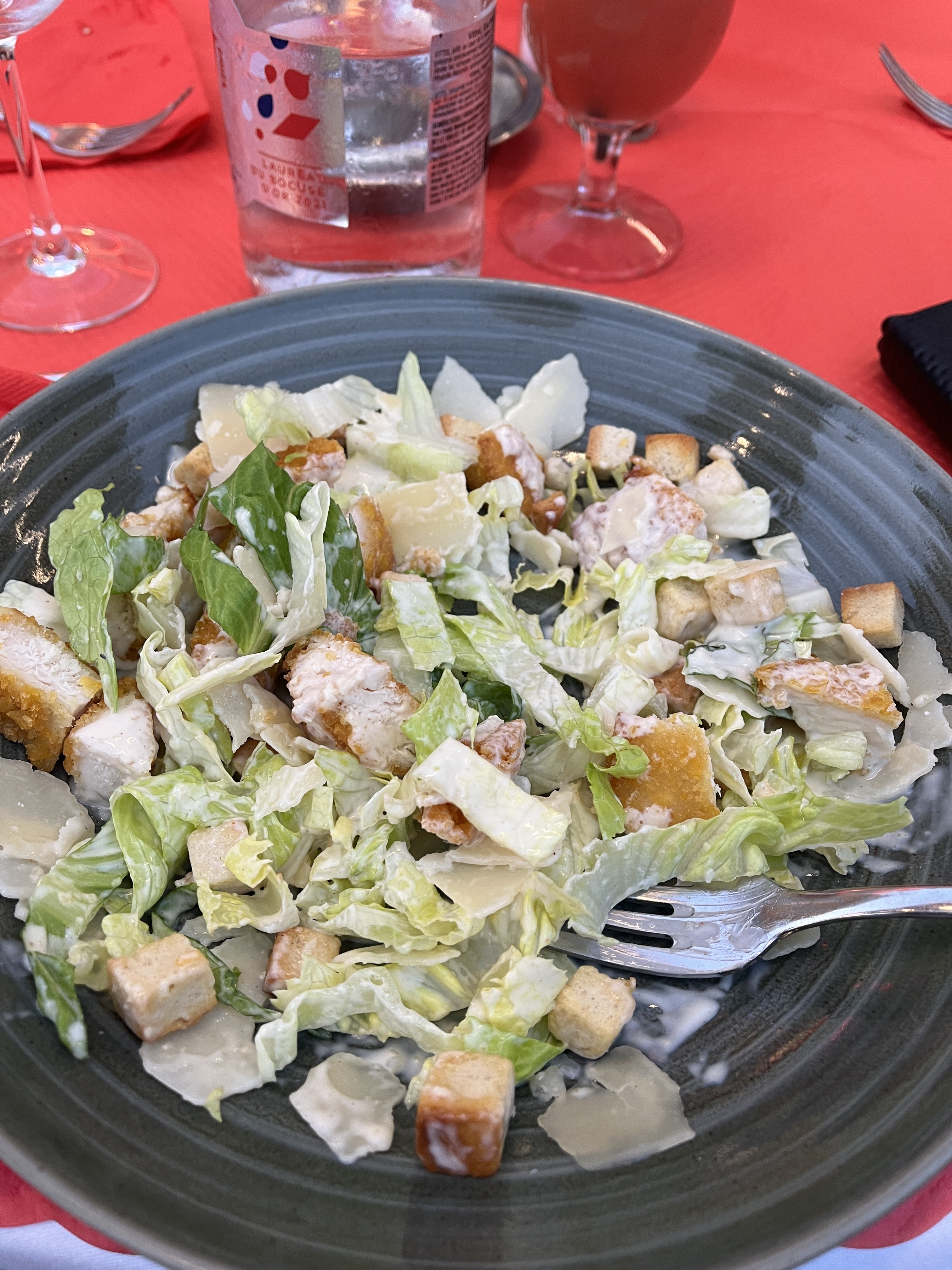 Clientèle de touristes. J’y ai commandé une salade niçoise. Concombre et salade fatigués, tomates sans goûts, olives avec un goût bizarre, vinaigrette industrielle. Le service était efficace, sans sourire ou interêt particulier pour notre table. Bien pour prendre un café, je passerai ma route la prochaine fois pour déjeuner