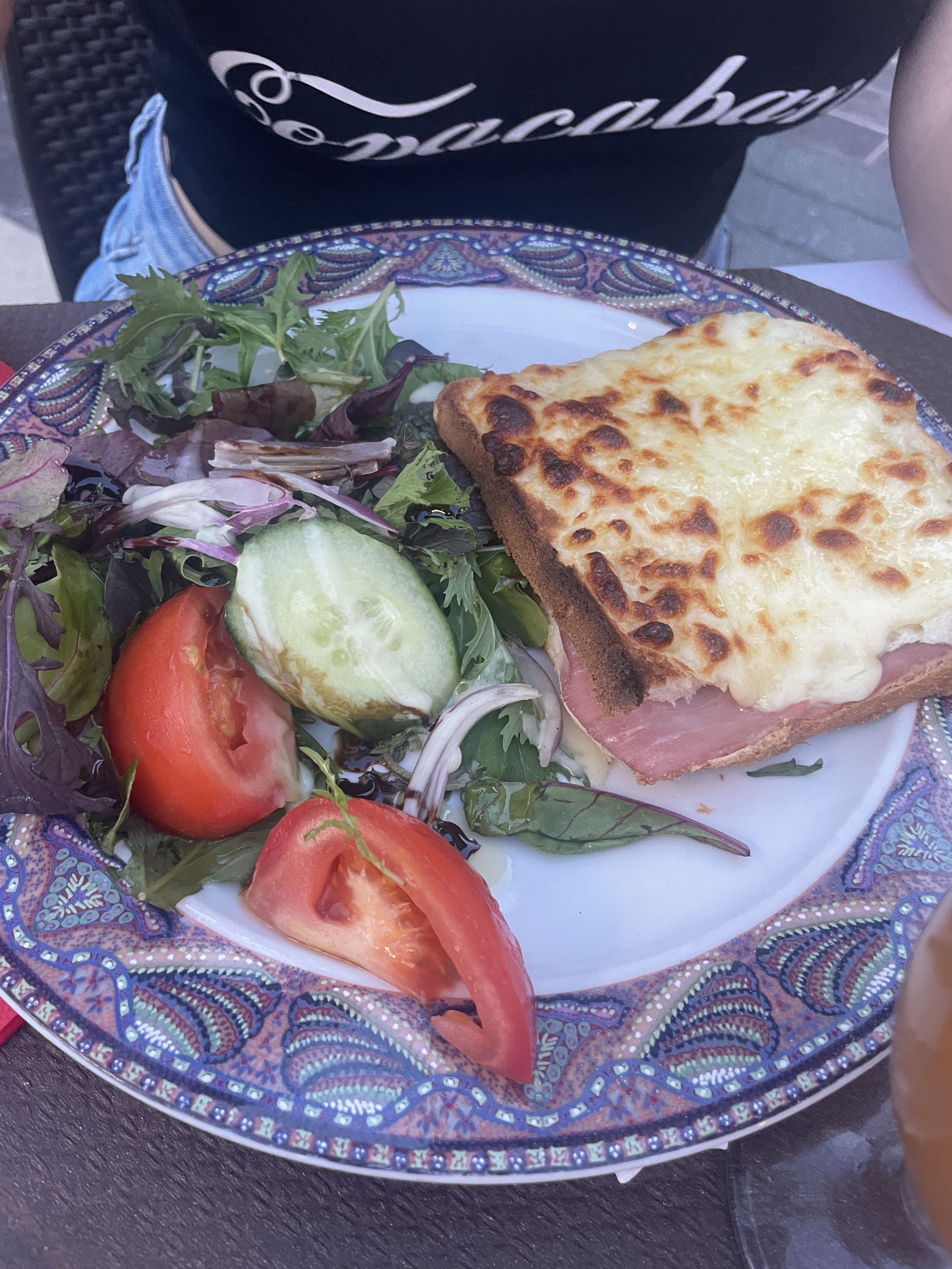 Le lieu est cool, mais c’est un restaurant à touriste. Le prix de ma salade était correct (16 euros) mais pour 3 pauvres bouts de chèvre, ça ne vaut pas le coup. Le coque monsieur a eu de meilleurs jours…. La serveuse était très polie et gentille.