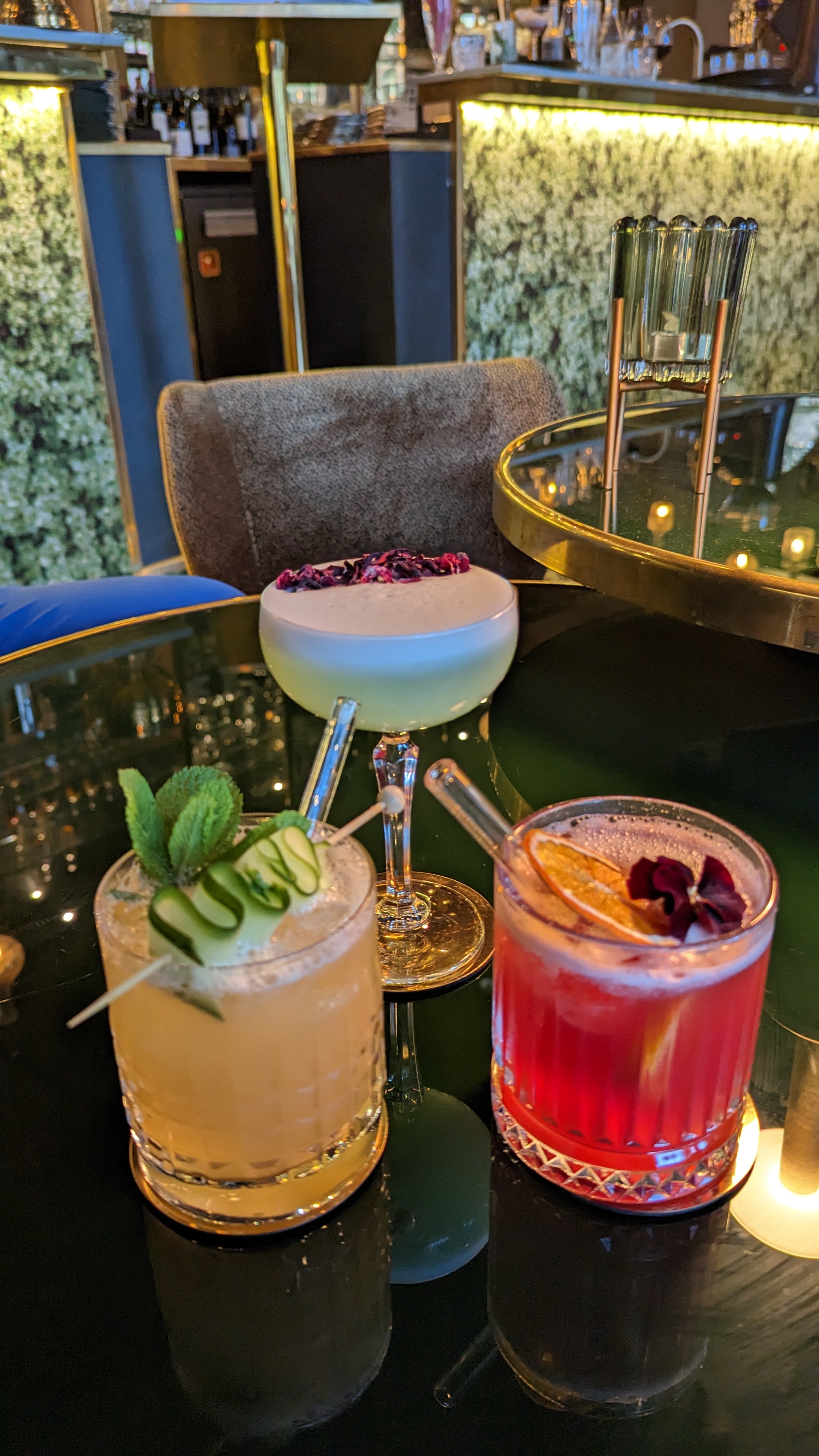 Jusqu'à présent, nous n'avions que des cocktails et du vin, qui étaient absolument incroyables. Le restaurant et le bar ont une ambiance agréable. Il y a des sièges à l'intérieur et à l'extérieur. Le service est excellent et vous devriez absolument essayer les cocktails signature pour voir le niveau de compétence du barman. J'adore cet endroit❤️
