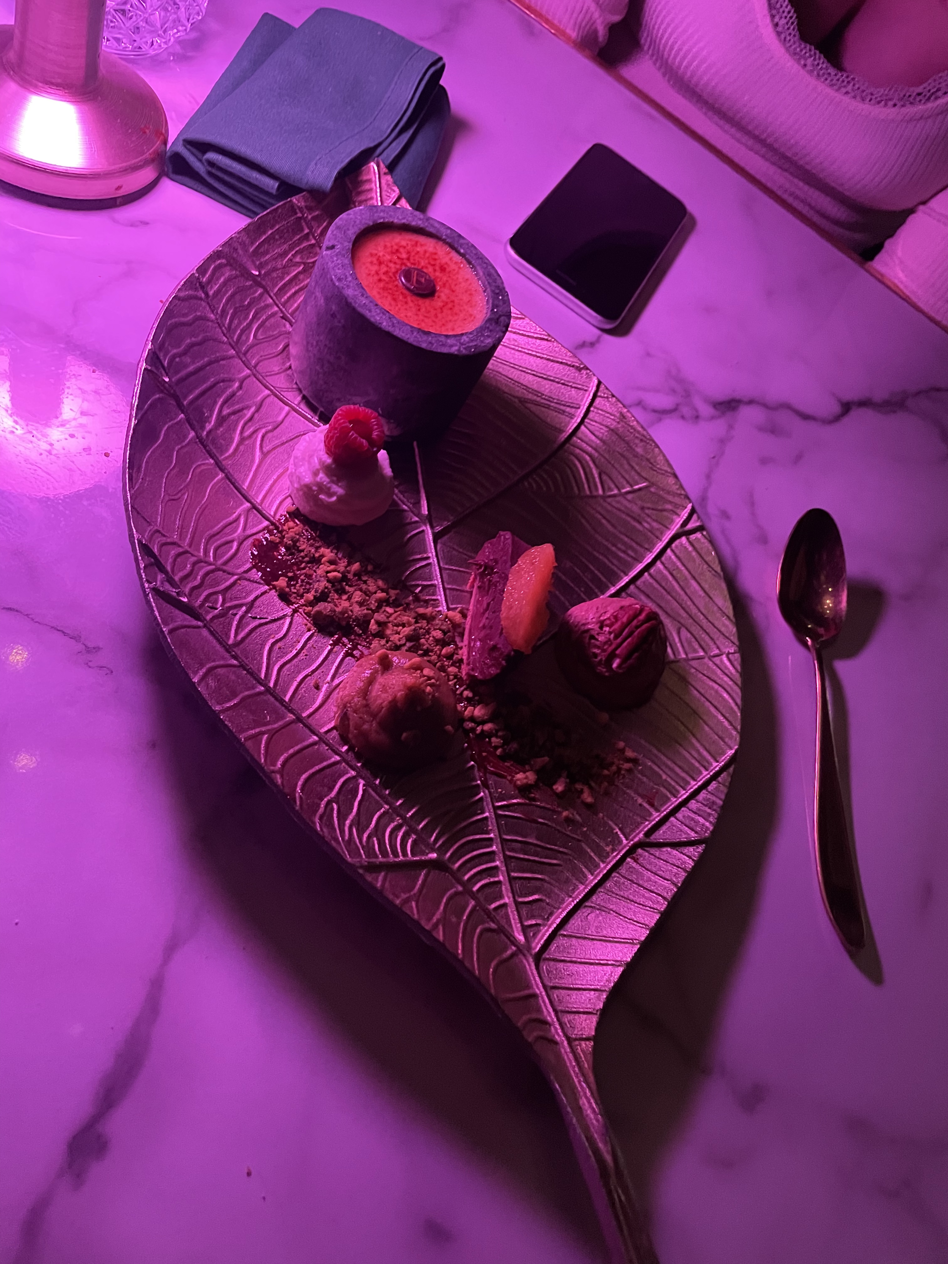 Superbe décoration.. night club plutôt? Superbe décoration des lieux inclus des accessoires de table, lumière tamisée, la plupart des serveurs bien serviables et souriants avec un dress code qui intègre bien les lieux. Mais cela s'arrête là. Musique bien trop forte et refus net du serveur de baisser un peu la musique : non, c'est le concept. Soit mais alors plus proche d'un concept de boite de nuit que d'un restaurant puisque pour discuter il faut parler bien fort. Mais ensuite le rapport qualité prix pour les plats n'y est pas. Pas de savon dans les toilettes au démarrage du service. Je ne recommande pas et avec mes amies nous avons décidé de ne pas y revenir.