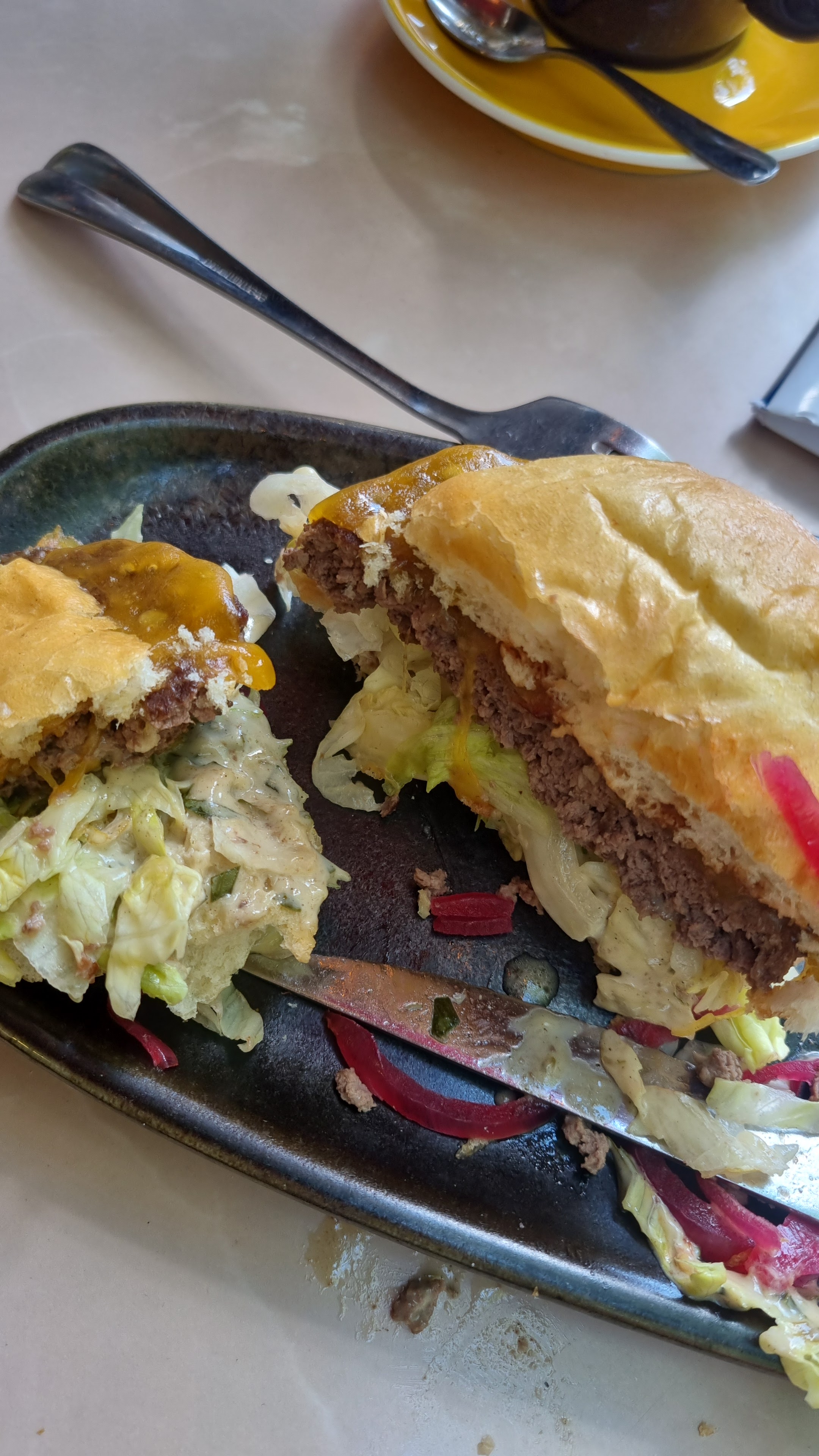 Je suis venu avec ma copine pour manger, le lieu est agréable, le temps d’attente pour les plats était infime, et la serveuse était vraiment très agréable (une grande blonde aux yeux clairs). Le burger était délicieux, ainsi que la bavette