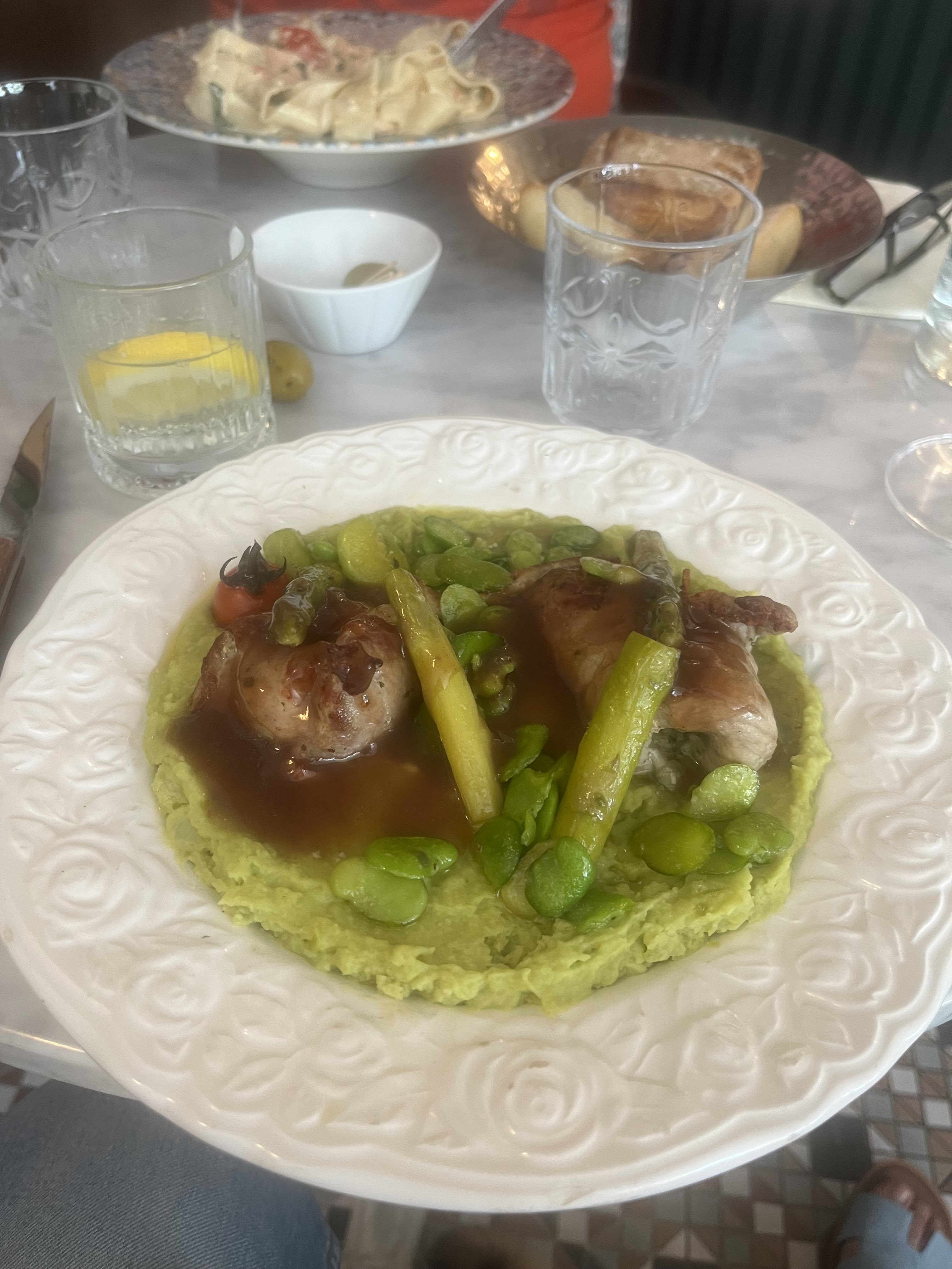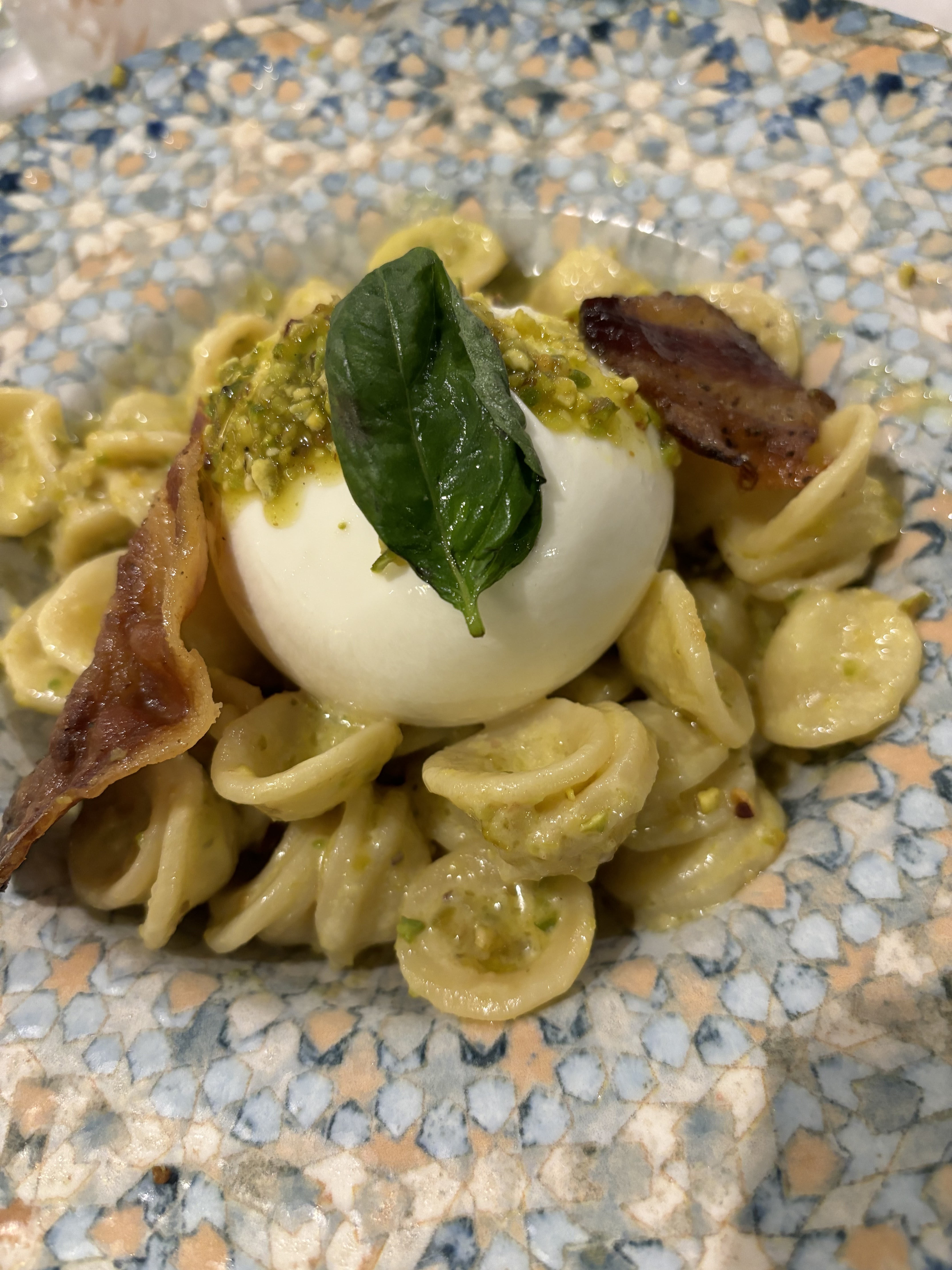 Resto sympa joliment décoré Les serveurs sont au top, j’ai pris des pâtes à la pistache avec burrata et en dessert le gourmand avec moelleux châtaigne, fiadone et tiramisu amaretti. Mention spéciale pour les desserts ils sont excellents.🤩 Petit bémol : assez bruyant comme ambiance.