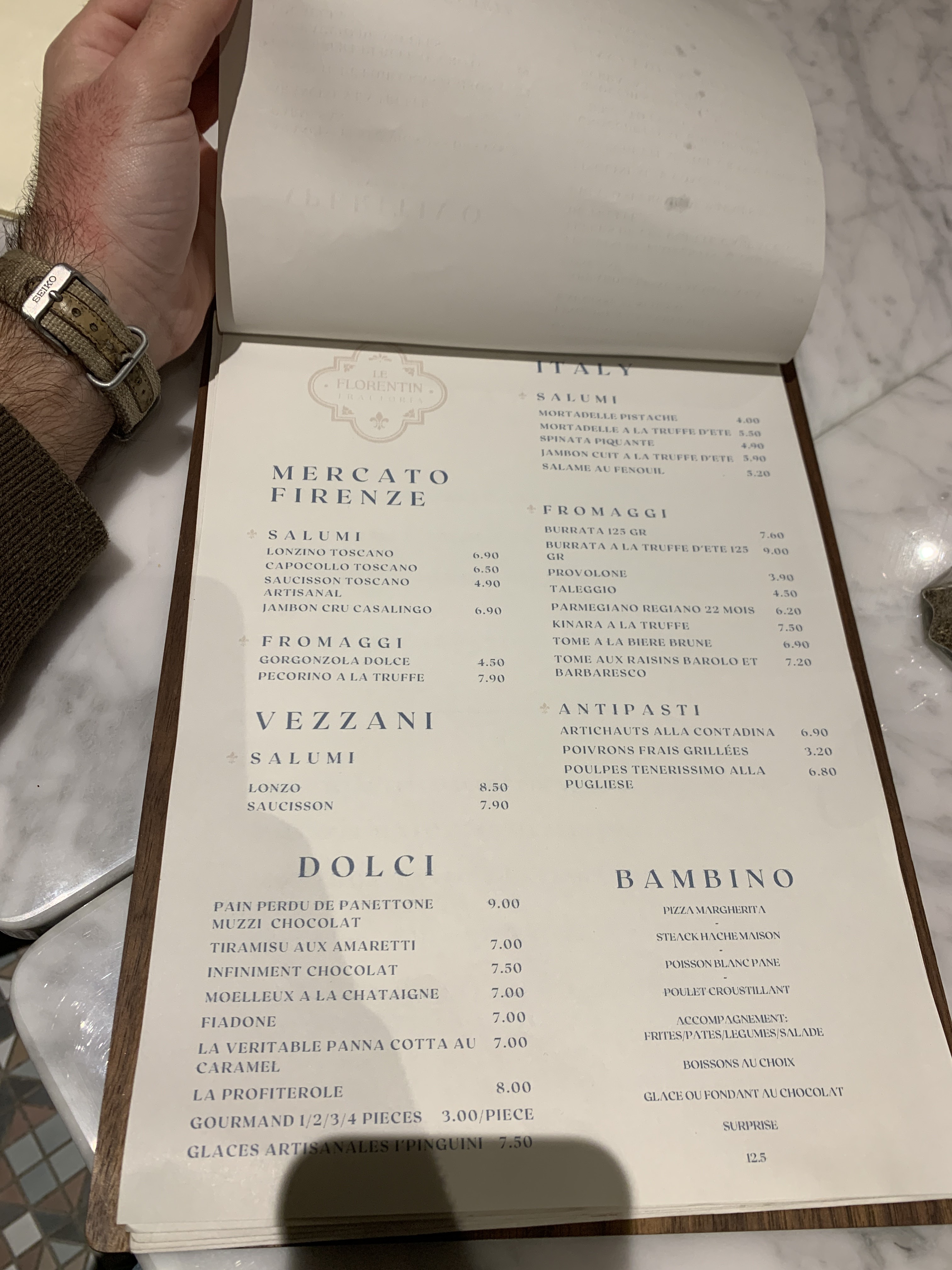 Expérience exceptionnelle !! Ouvert depuis seulement trois jours, Le Florentin a su se montrer très organisé dans son service. Les serveurs sont très agréables et à l'écoute. Les repas sont excellents et sont arrivés avec une rapidité hors-norme. Je souligne également la présence d'un mixologue qui fait de formidables coktails. L'ambiance est très chaleureuse et la musique de fond est très agréable. Il y a un très bon rapport qualité/prix. En definitive, je recommande ce restaurant à tout le monde et j'y retournerai avec grand plaisir. PS : Une épicerie fine est présente. Elle propose de bons produits italiens et corses.