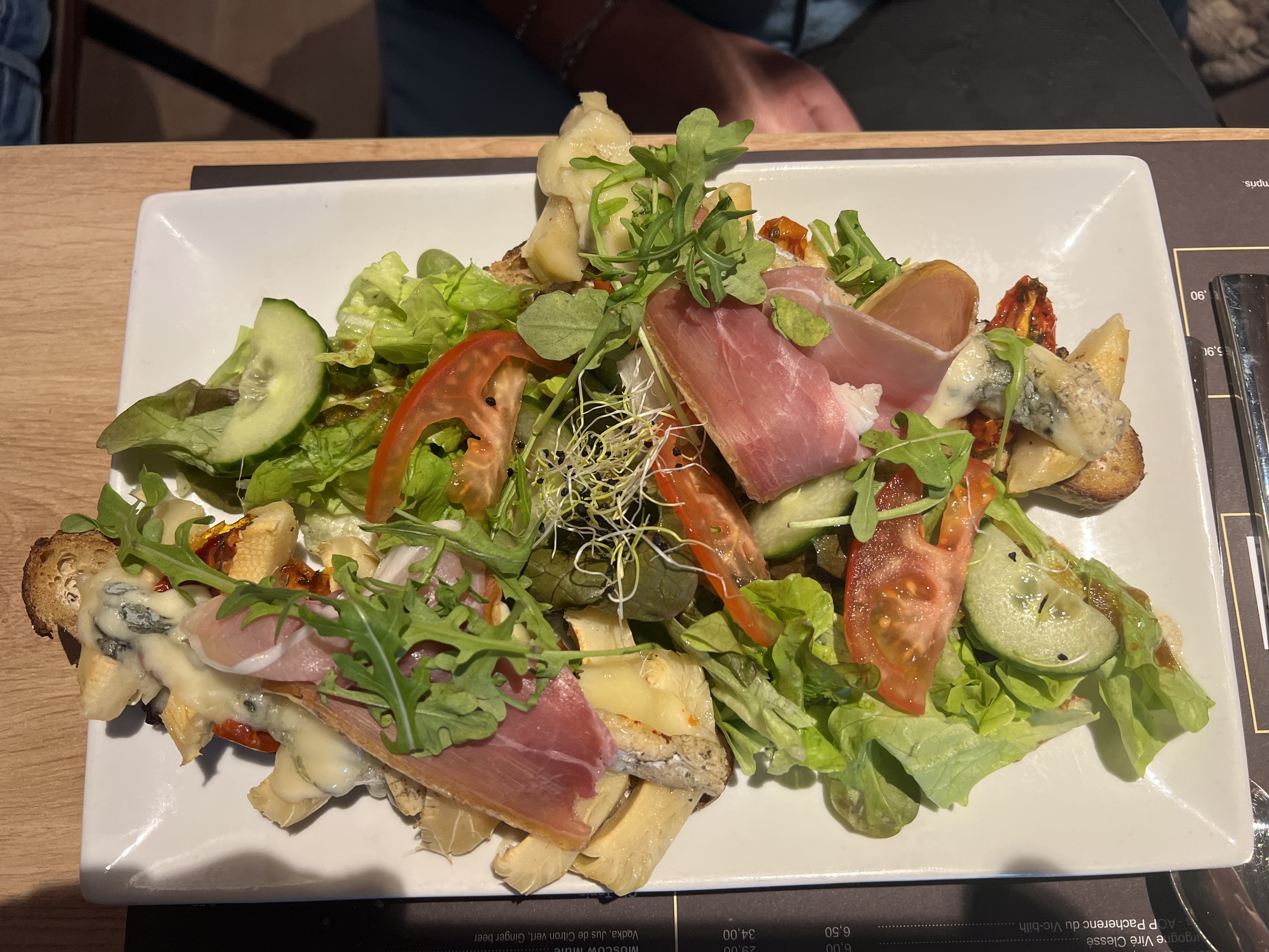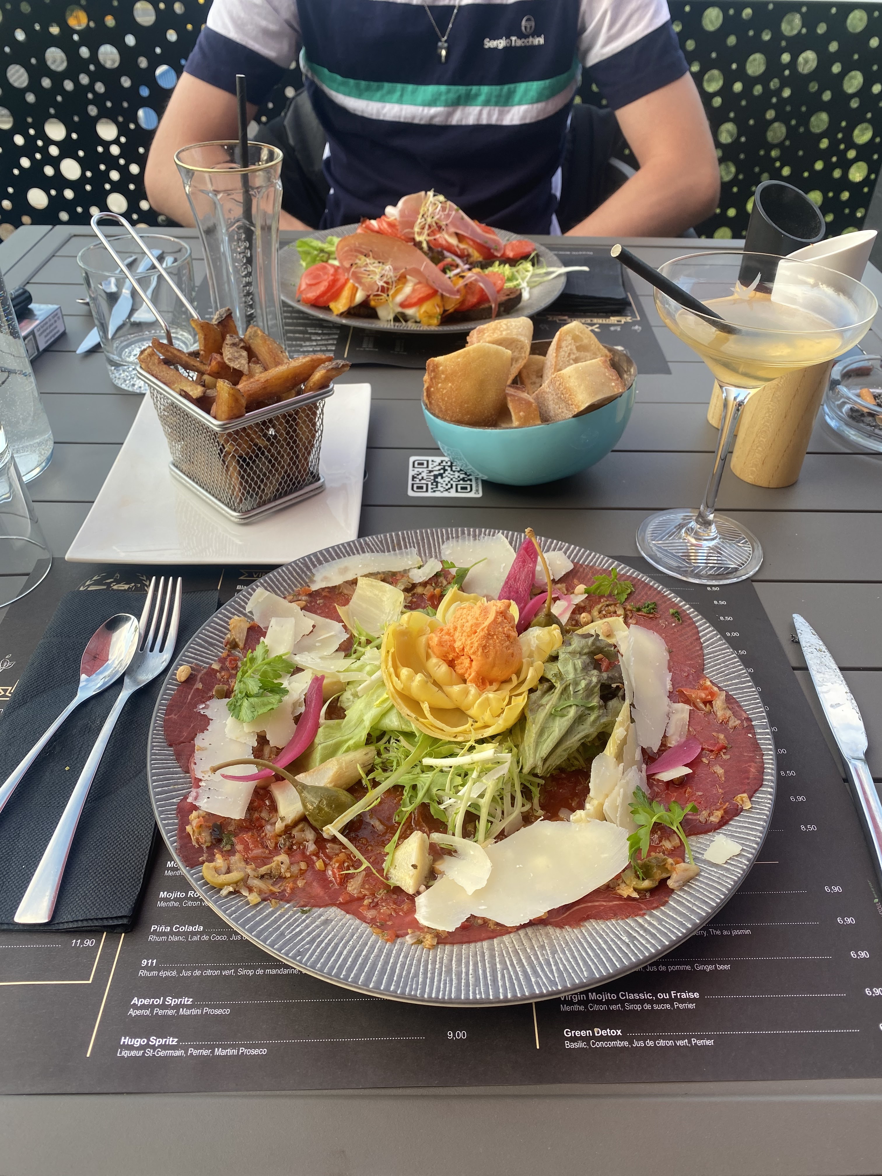 Je trouve ça tellement triste cette nouvelle façon de choisir son menu en scannant un QR code , et de se retrouvé sur son portable au restaurant ! 😕 Et niveau cuisine j'ai choisi tartines de chèvre, pommes,miel. Les tartines était vraiment trop cuites, (noir sur certains endroits) pas top pour manger avec des couverts... Le prix était très correct.