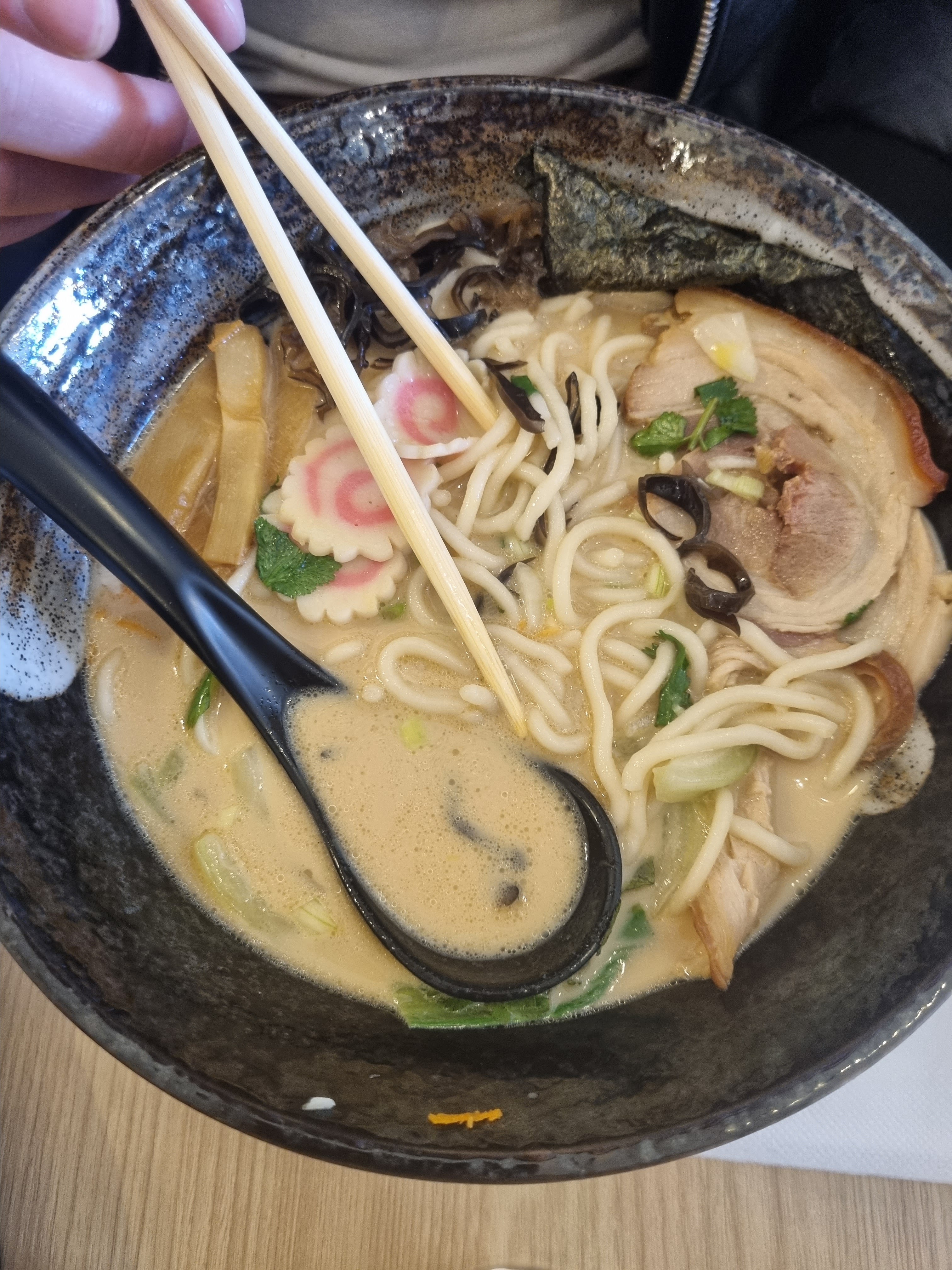 La serveuse à vraiment été adorable, mais malheuresement c'est bien la seul chose que j'ai apprècié. J'ai pris un ramen au ribs de porc avec un supplément de ramen. - +30 min pour être servi (13h, il y avait du monde). - Les ramen étaient plus proche de spaghetti. - Ribs sec. - Bouillon vraiment très léger niveau goût. - Supplément ramen permet tout juste d'atteindre une portion normal. Mais : - La serveuse nous a accueilli alors que le restaurant été plein et a su nous faire une petite place. - Super souriante et agréable. - Nous n'avons pas payé le supplément de ramen.