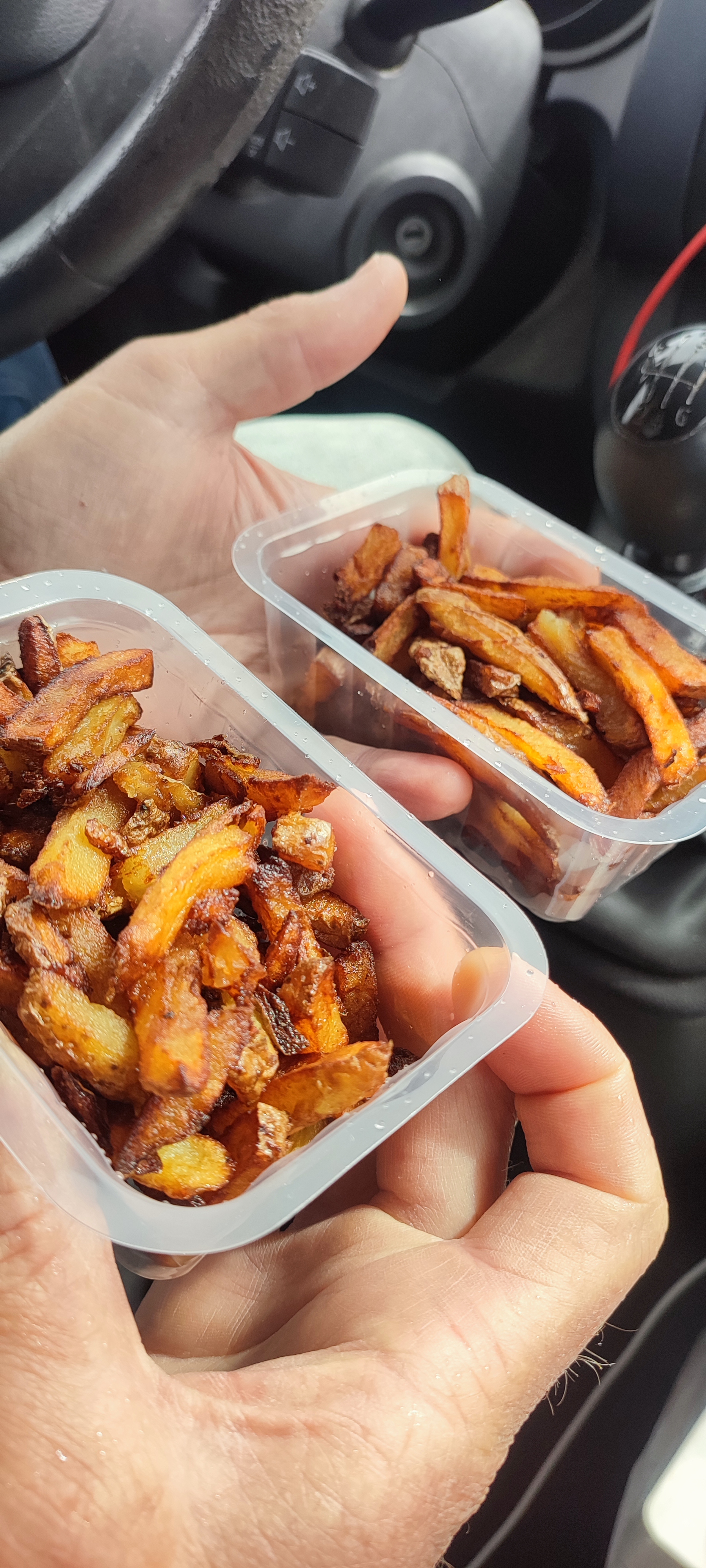 Des frites pleines d'huile, faites maison, mais vraiment dommage. Petit récipient en plastique, sans sauce, 3 euros. Il y avait un choix de 1 hamburger. Non, je ne reviendrai plus ici