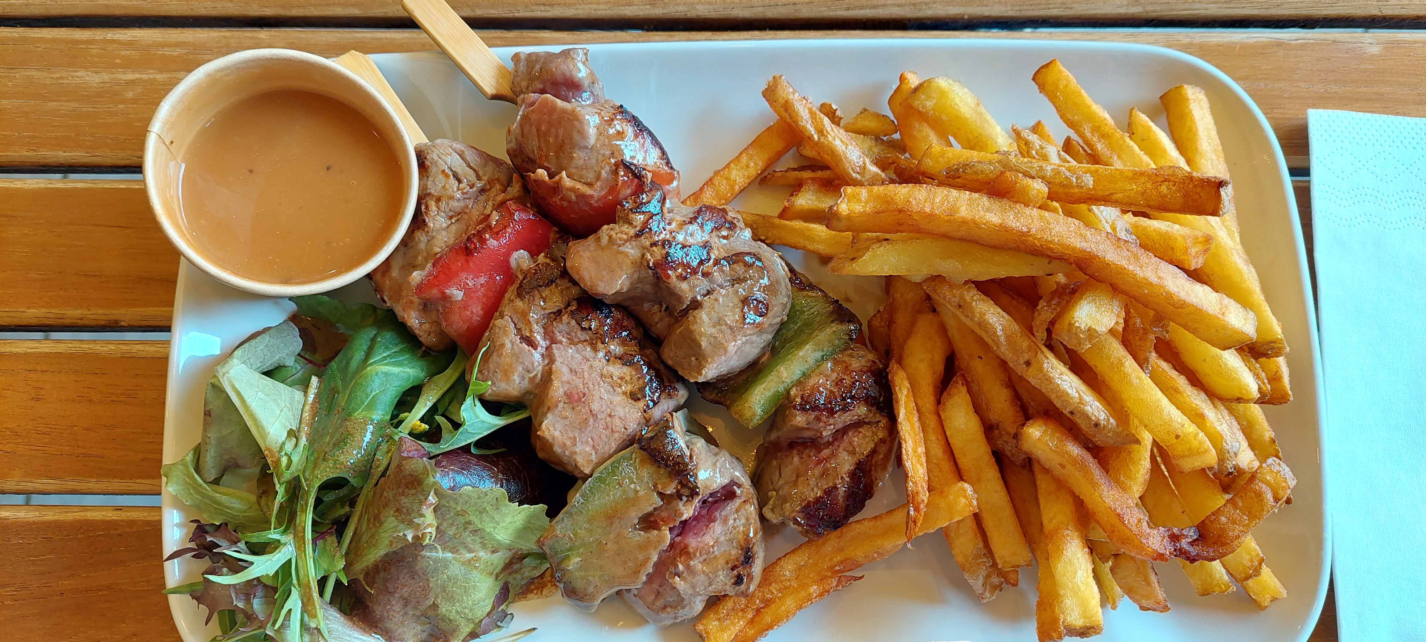 Excellent burger et brochettes délicieuses. Les patrons sont très accueillants. Je sais où aller si je suis dans les parages au moment du repas...