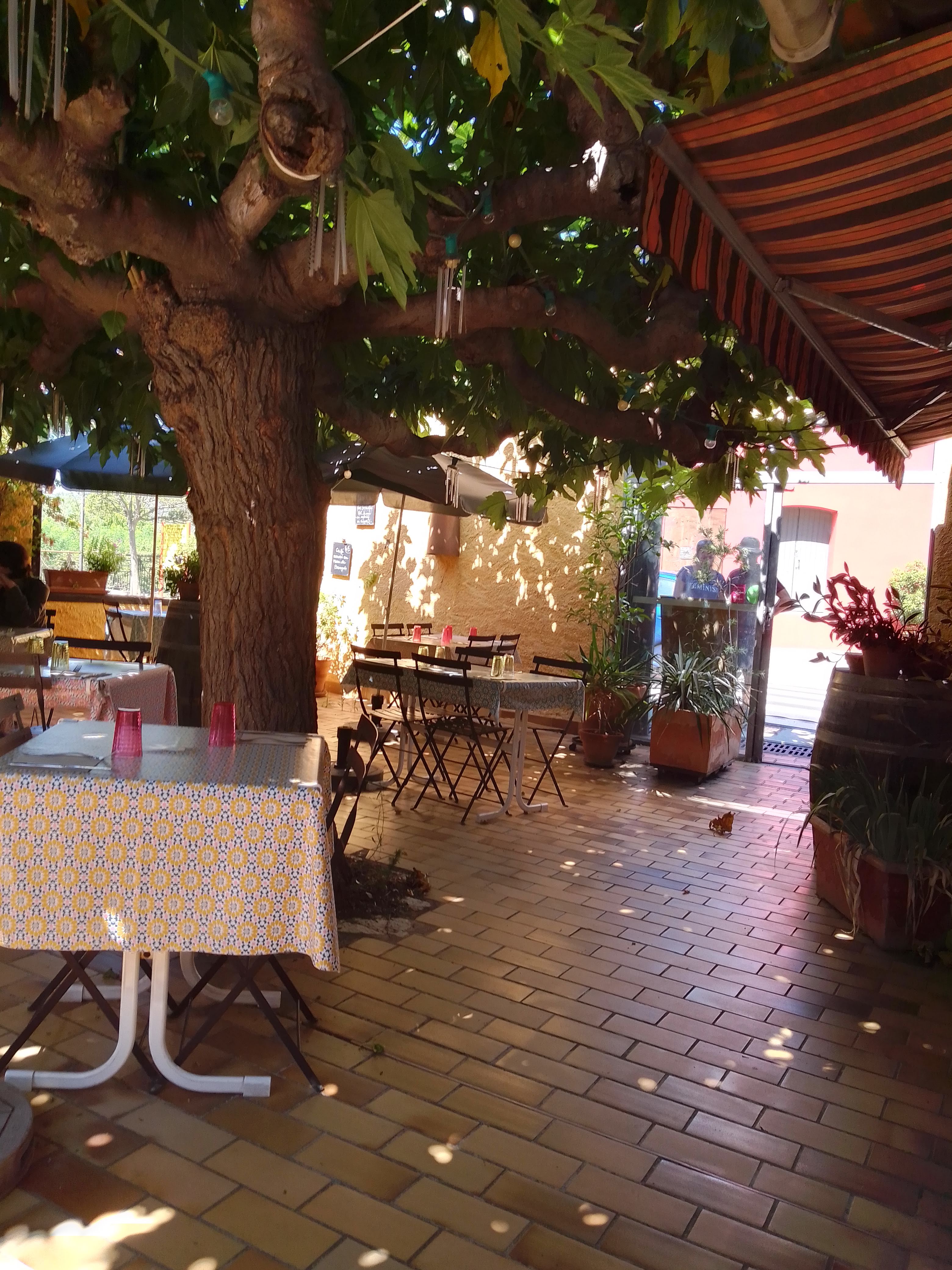 Une terrasse ombragée dès plus agréable... Des plats colorés de produits frais ...des goûts et des saveurs ....Merci a recommander