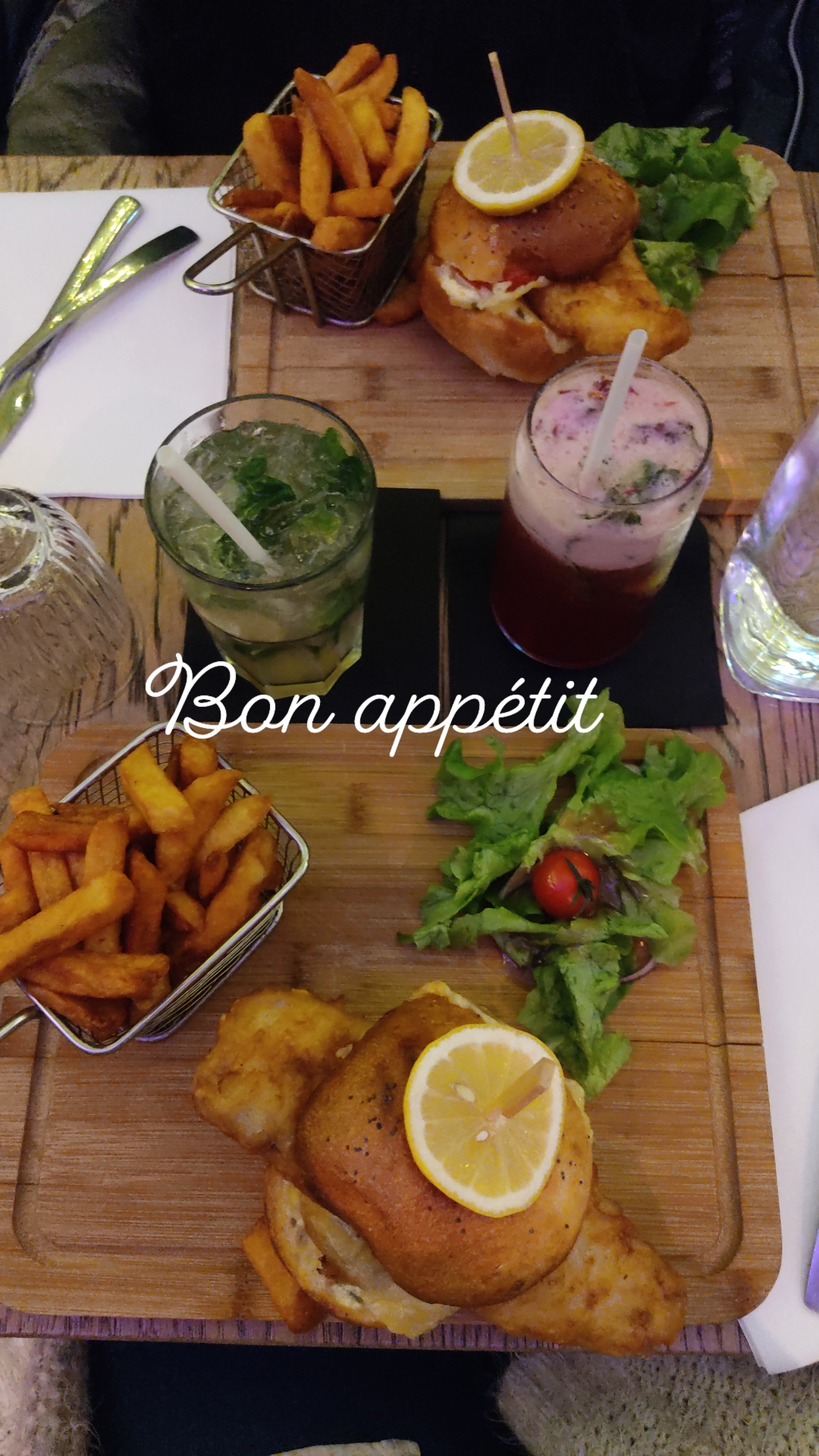 Lieu super convivial pour boire un verre entre amis (photo ci-jointe) ou même pour manger ! Les prix sont raisonnables par rapport à la qualité ! Seul petit bémol, le service peut être un peu long en raison du monde mais cela reste raisonnable !