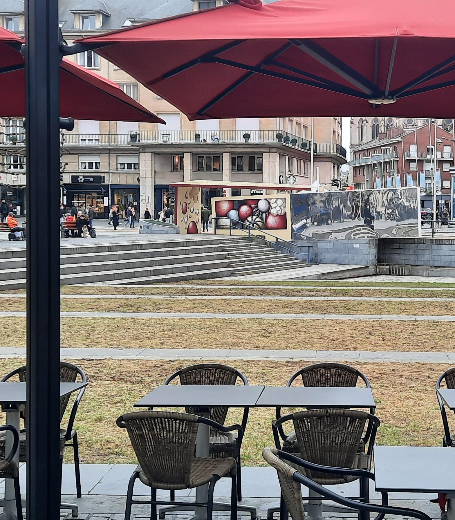 Brasserie idéalement placée au centre-ville La grande terrasse permet de manger et de profiter l'ambiance citadine.....